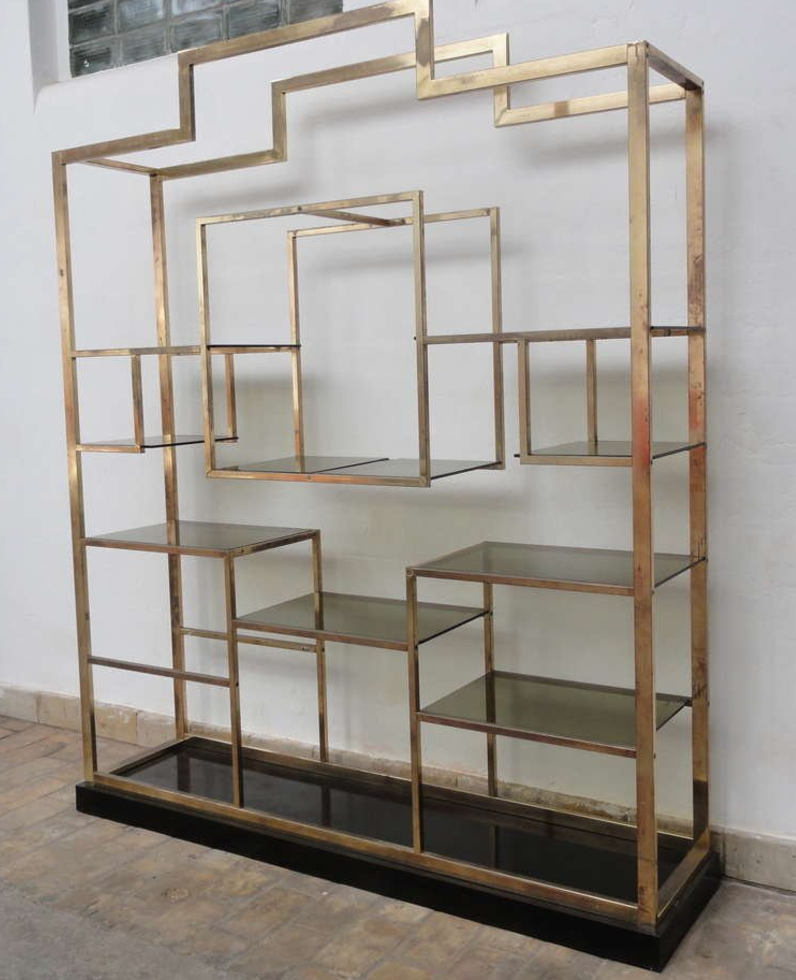 Bibliothèque étagère laiton Kim Moltzer années 70
