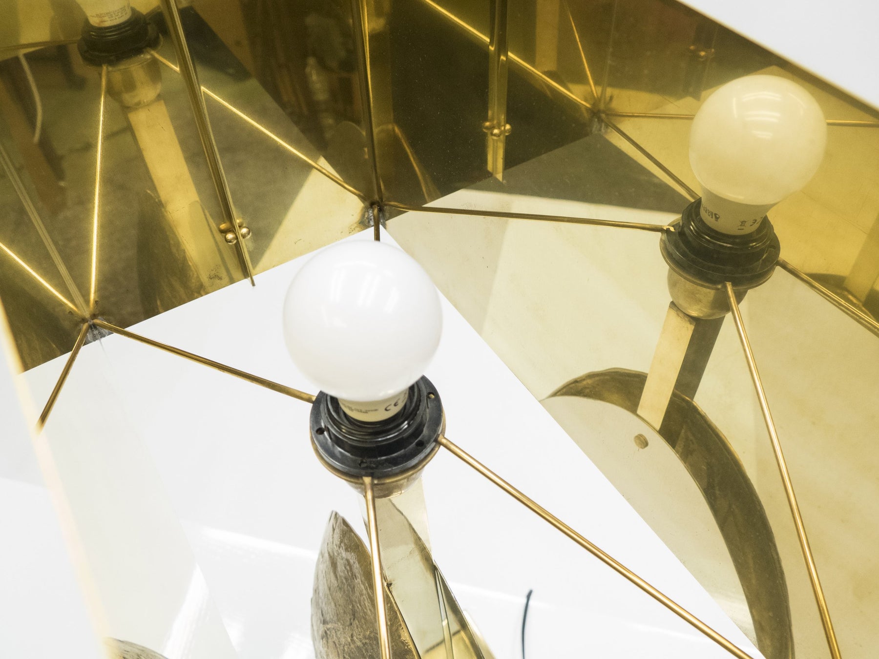 Grande lampe sculpture laiton bronze par Willy Daro 1970
