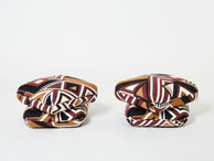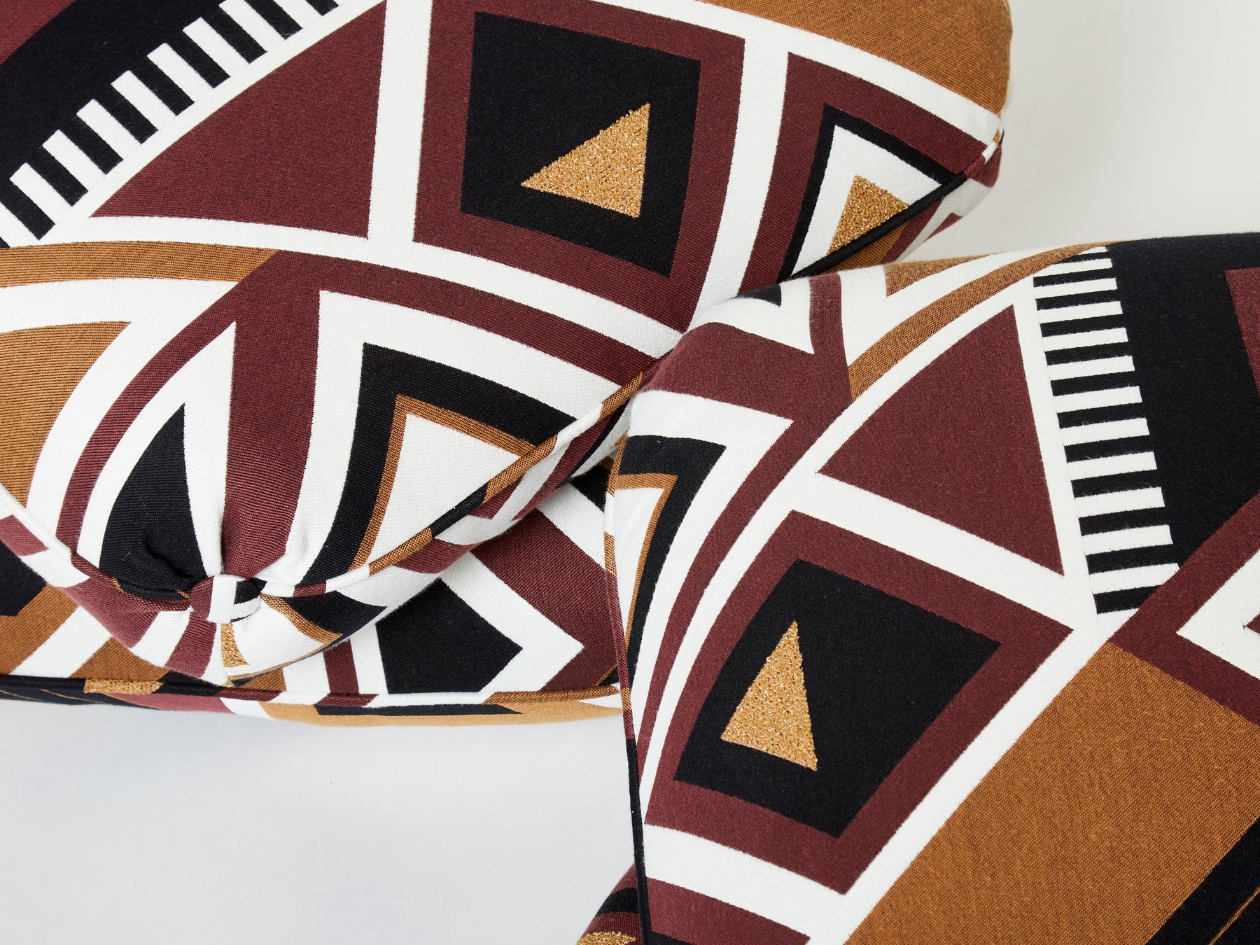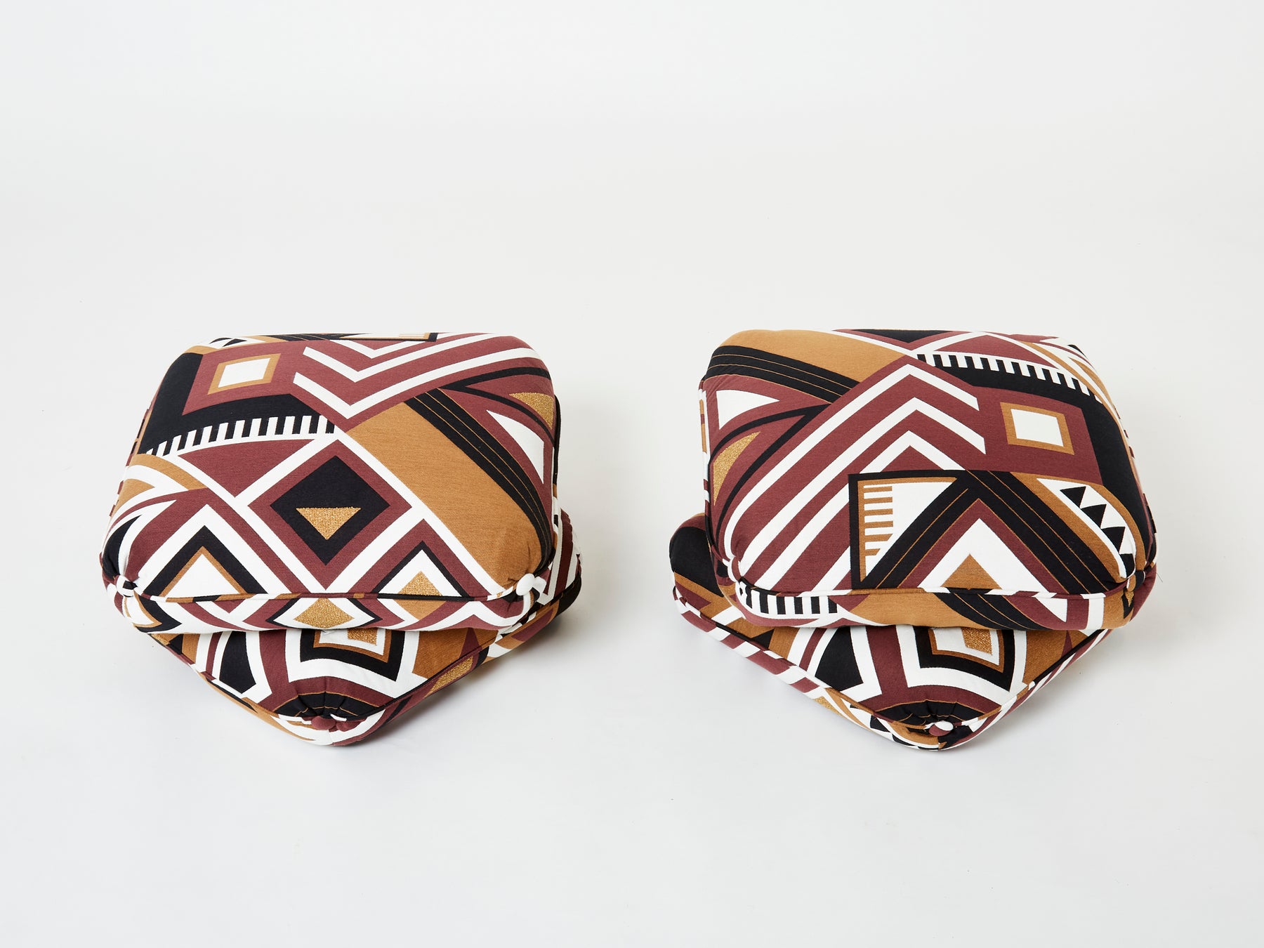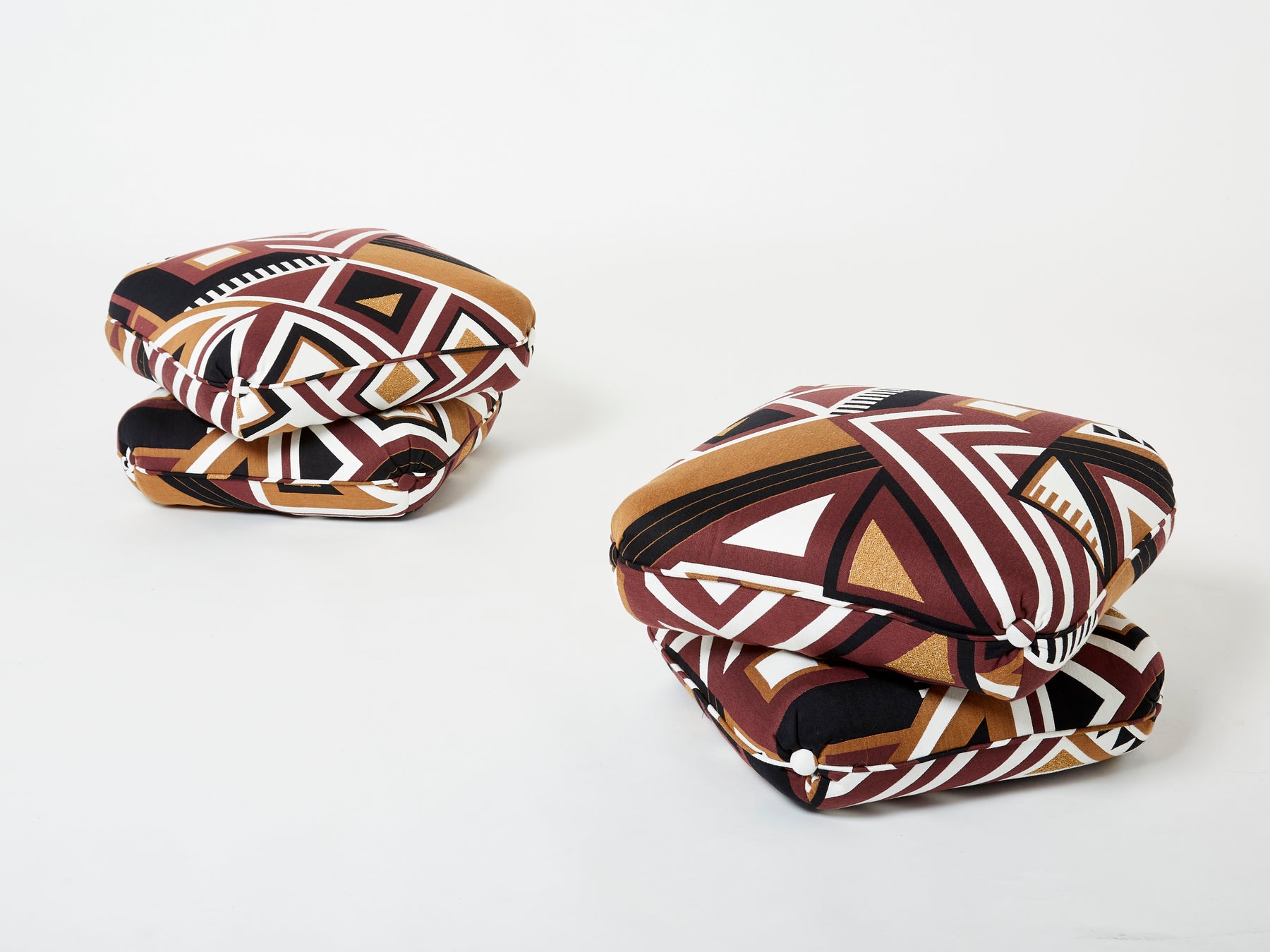 Jacques Charpentier paire de poufs jacquard graphique Maison Jansen 1970