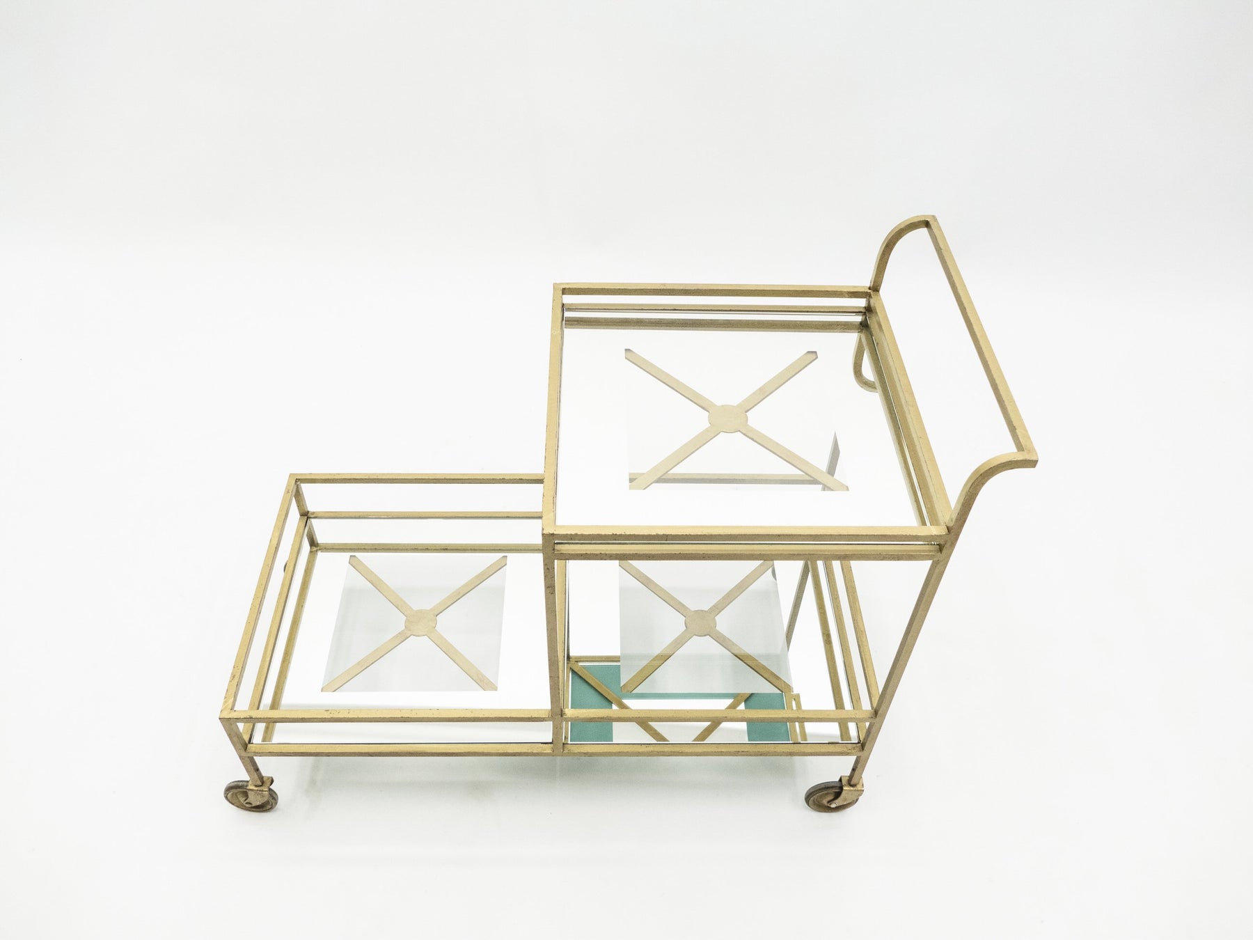 Rare desserte de Jean Royere en fer forgé doré et verre miroité datant des années 50. Superbe état de conservation, et très belle patine.