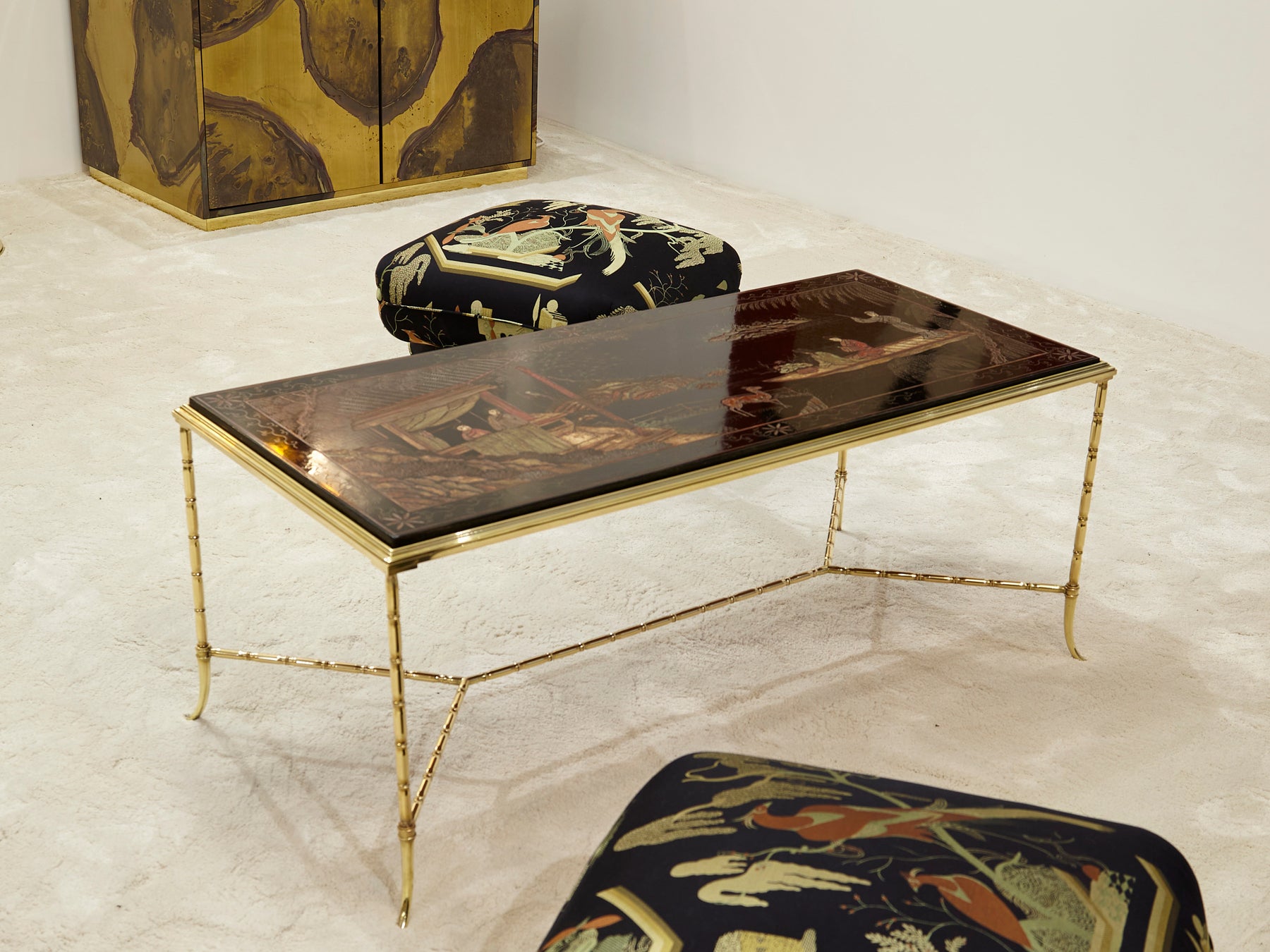 Table basse bambou laiton laque de Chine Maison Baguès 1960