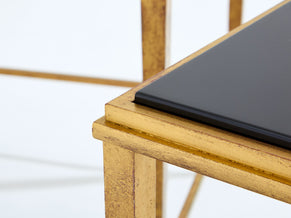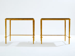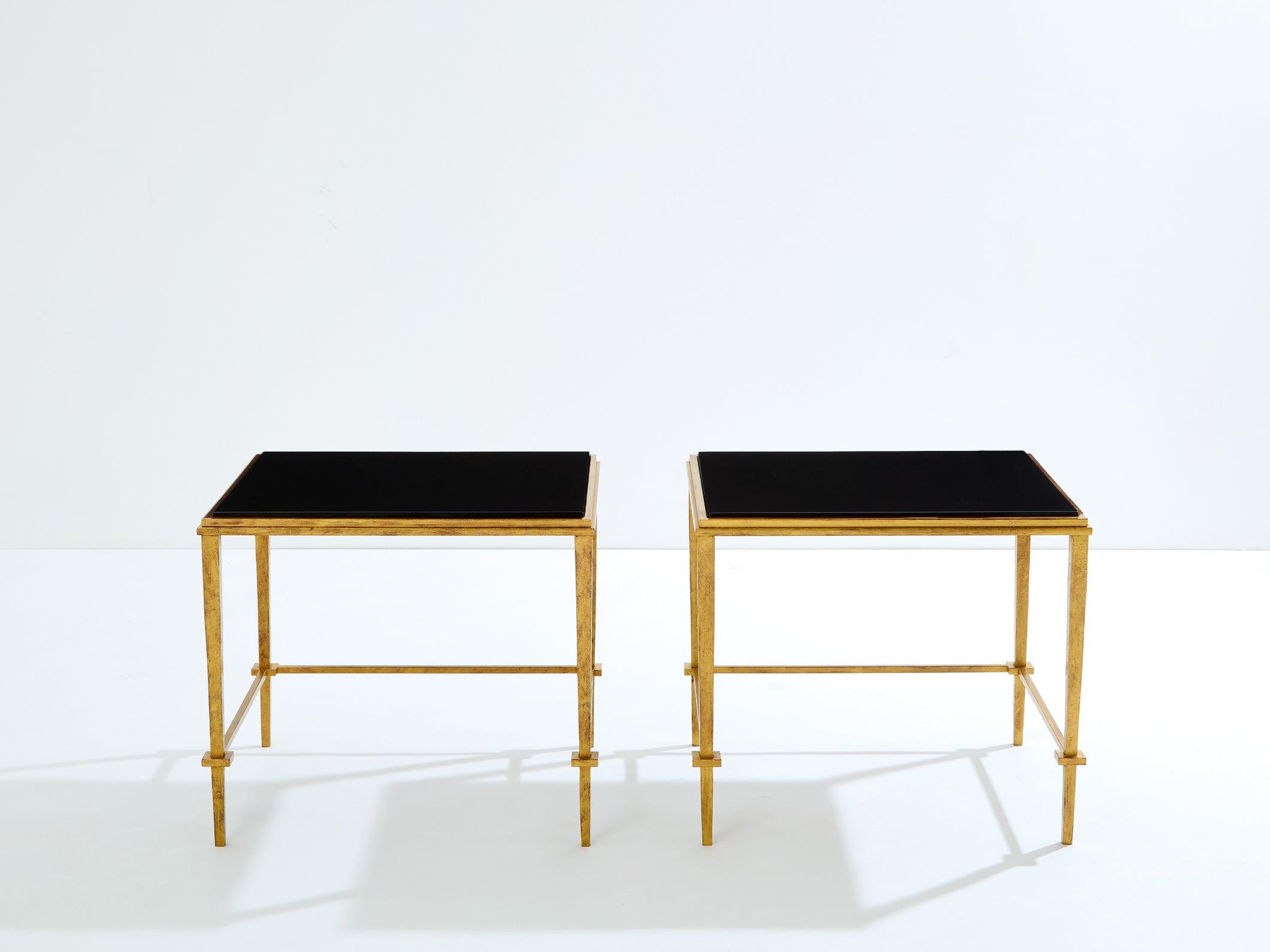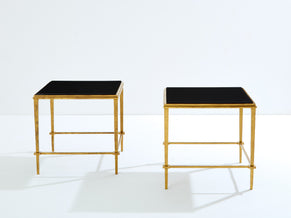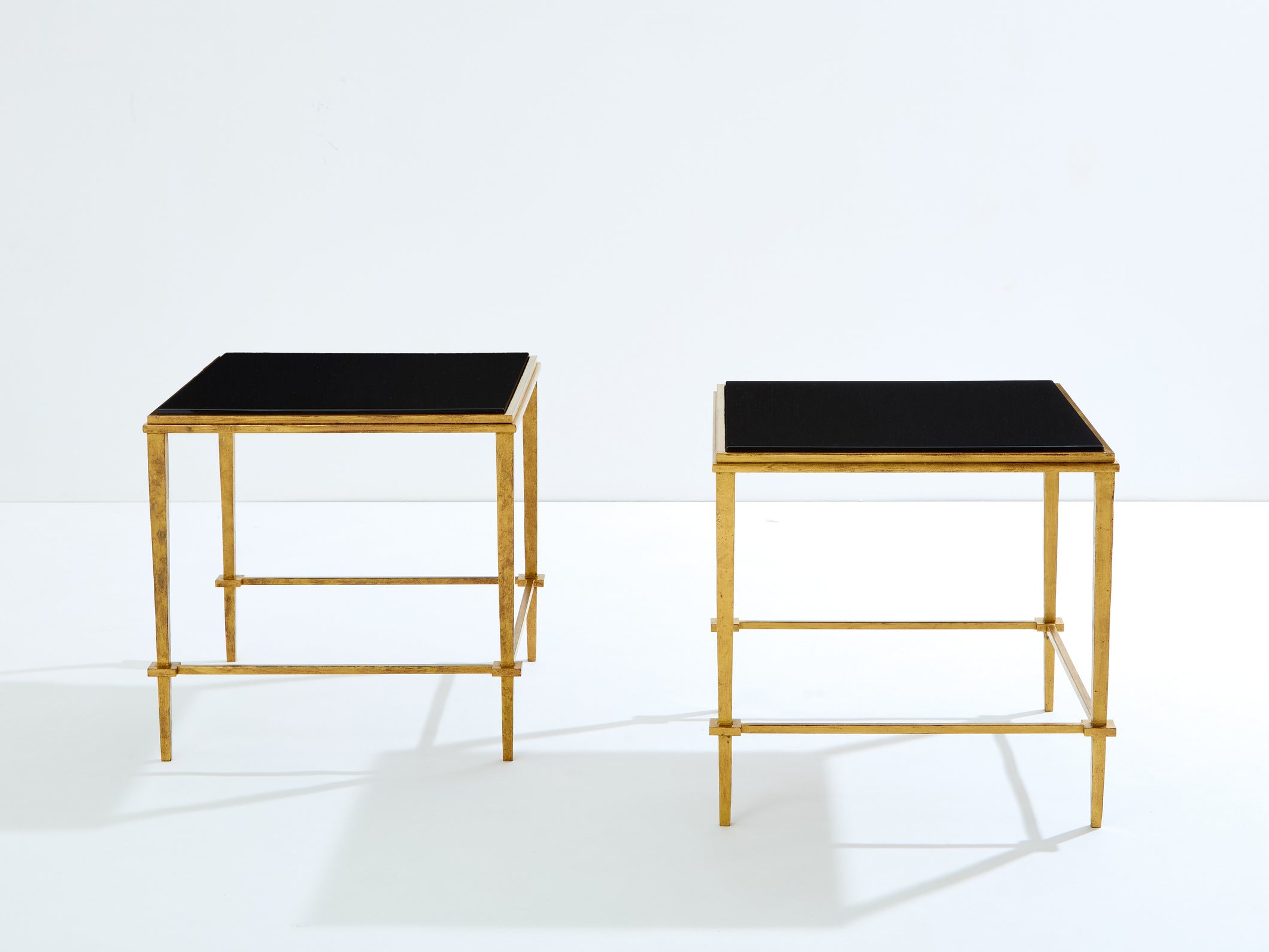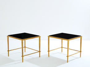 Paire tables d’appoint fer doré laque noire Maison Ramsay 1950
