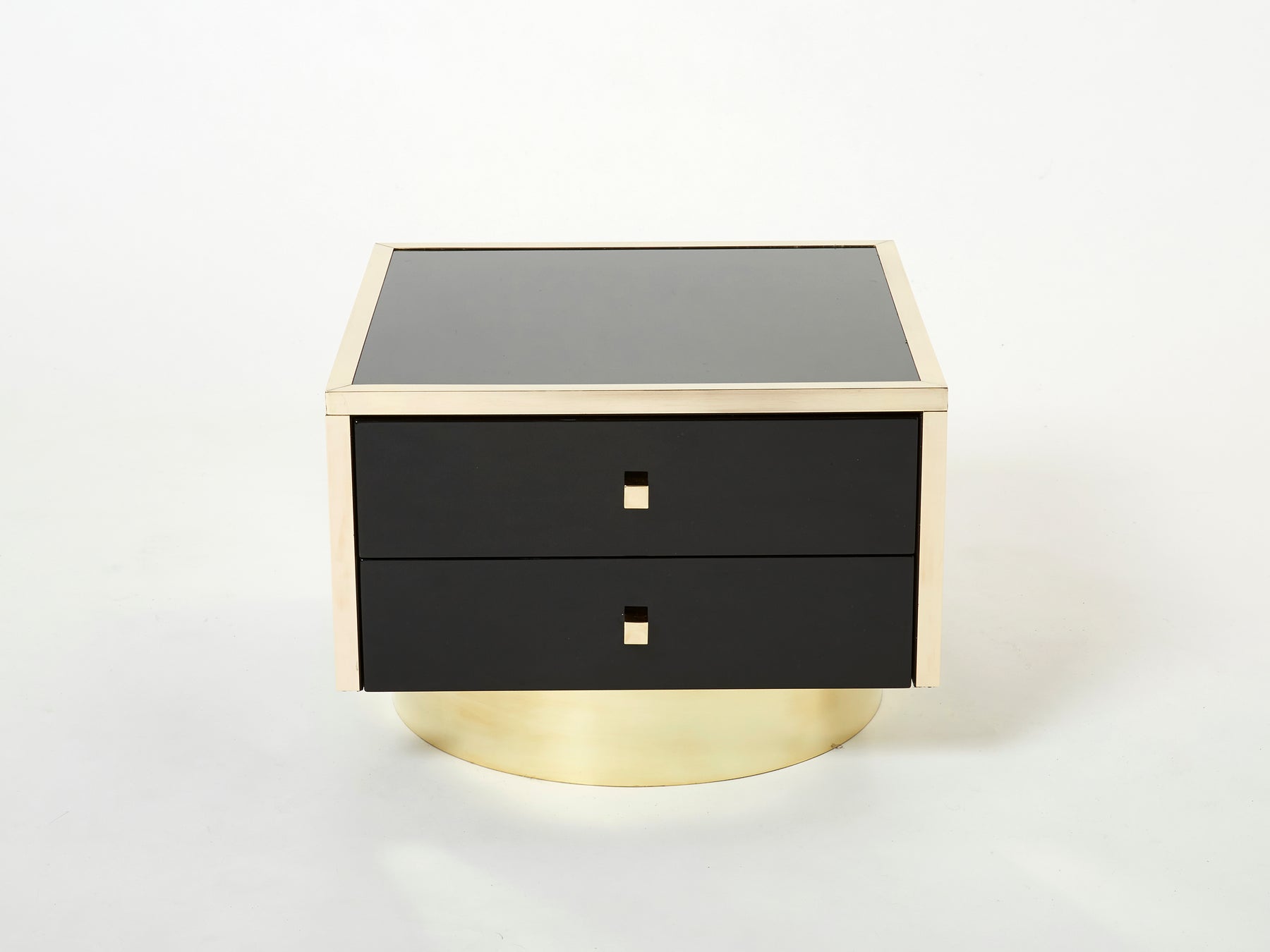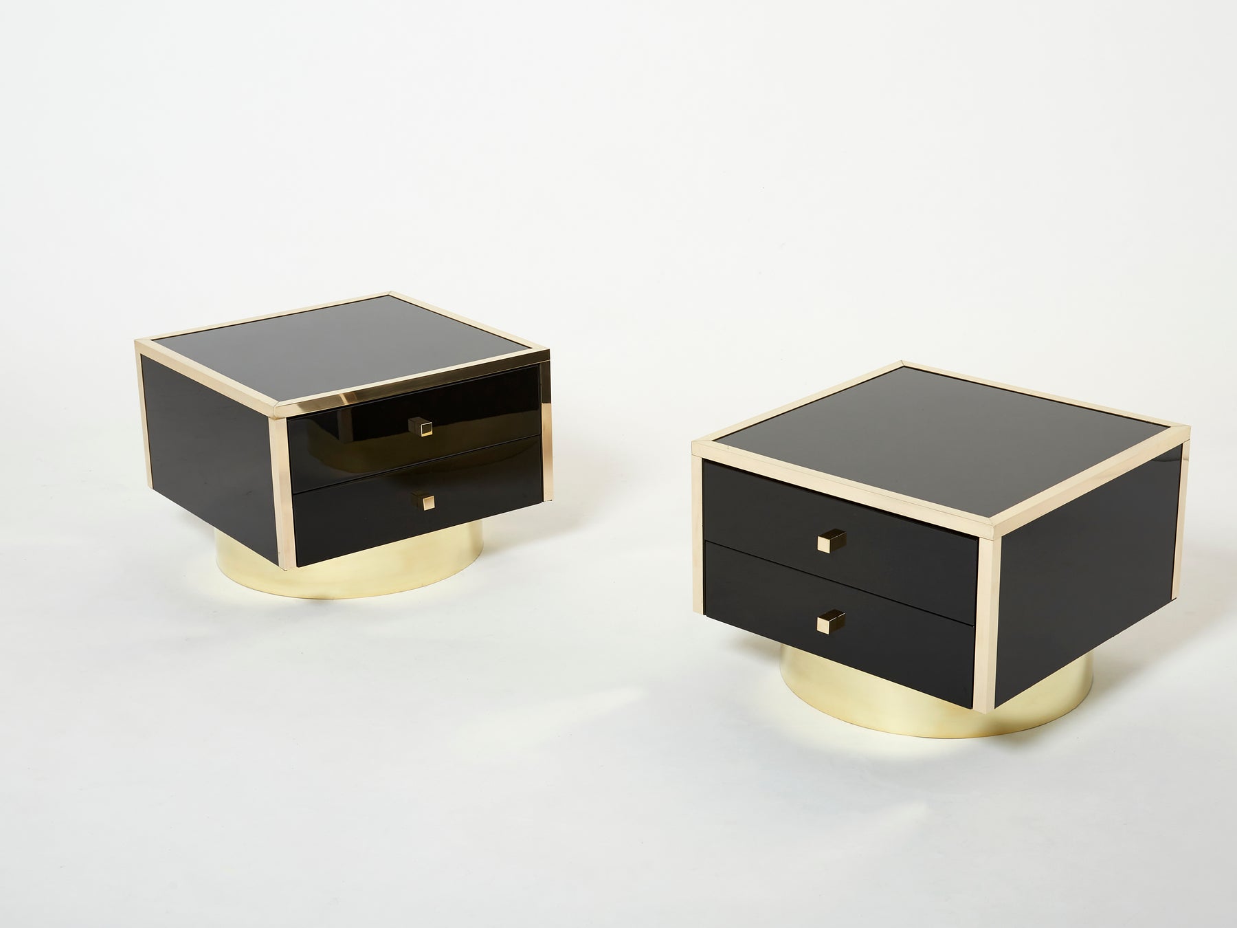 Paire de tables de chevet laquées laiton par Michel Pigneres 1970