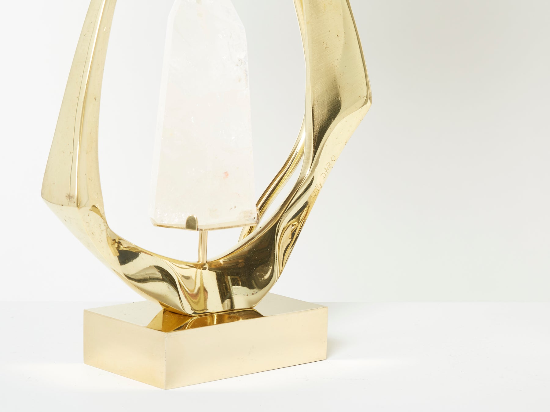 Paire de lampes en laiton cristal de roche signées Willy Daro