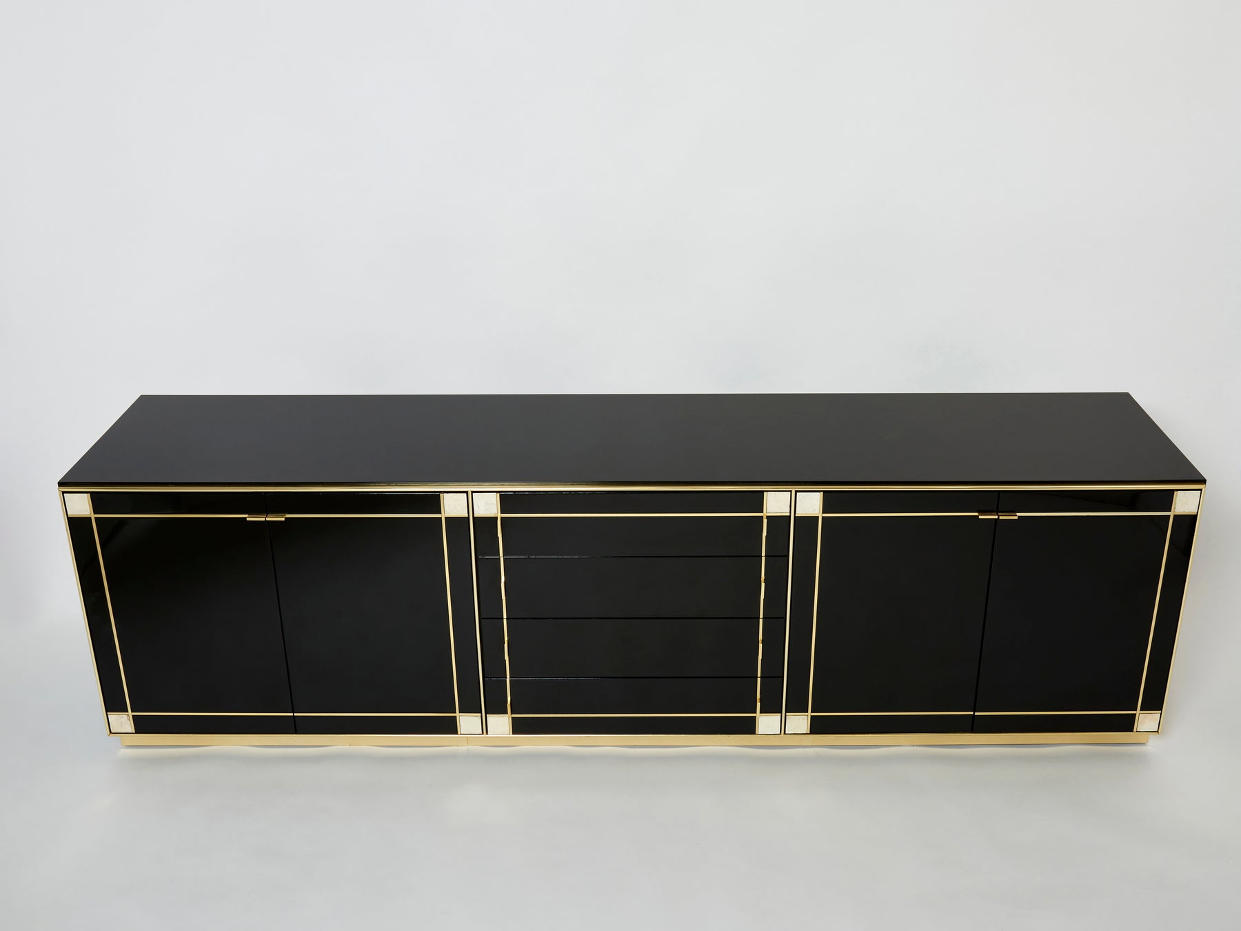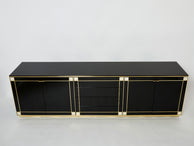 Enfilade laquée noire laiton et nacre par Pierre Cardin 1980