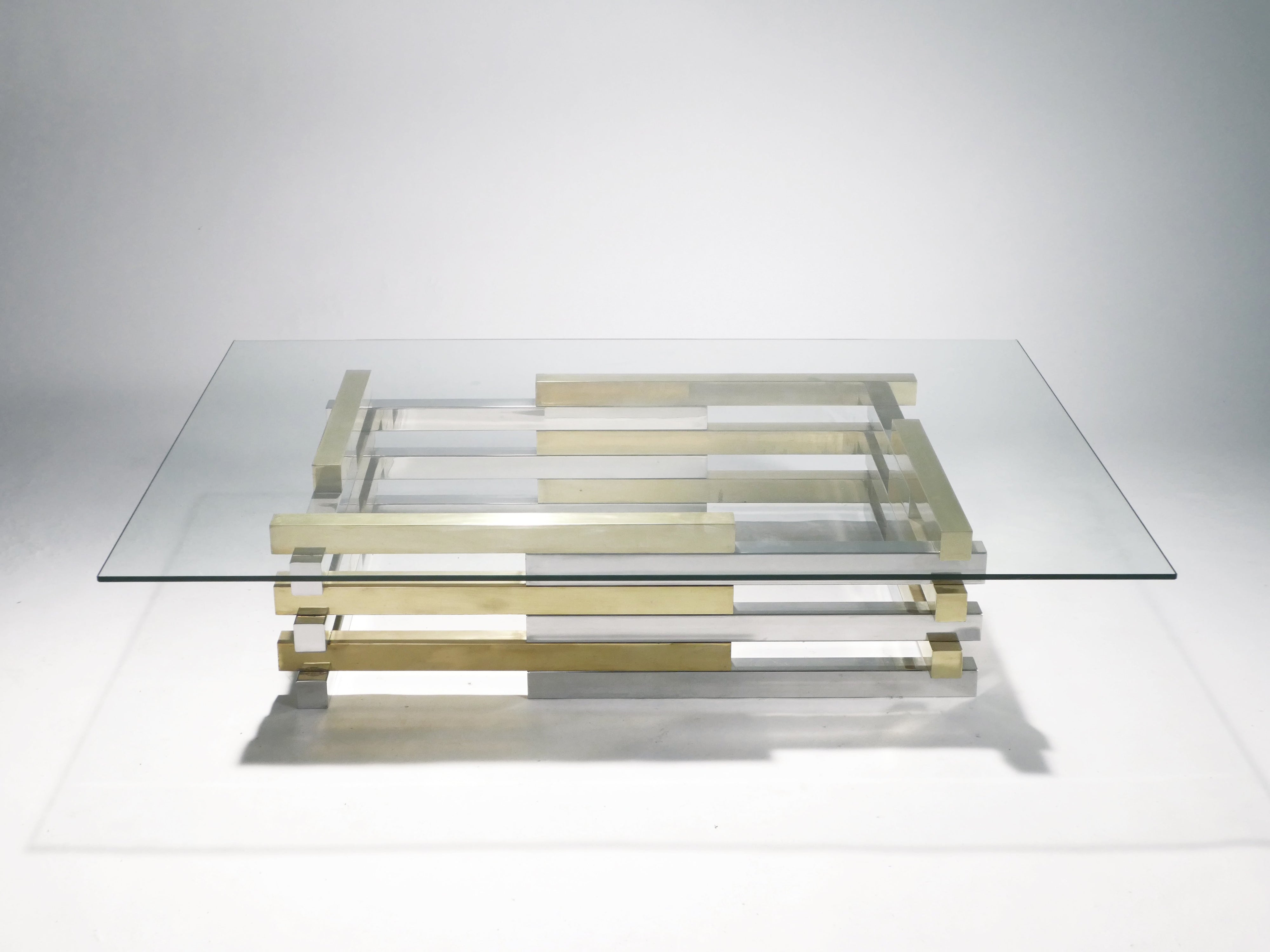 Rare grande table basse laiton et chrome Pierre Cardin années 70