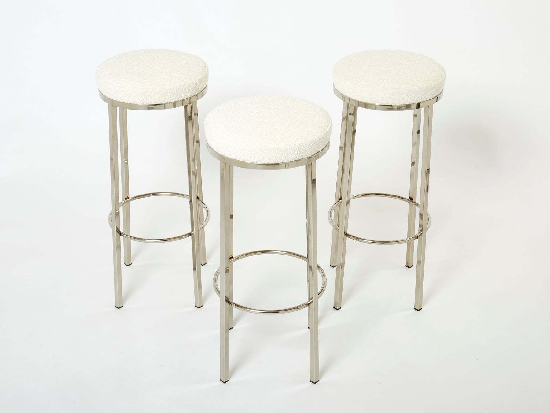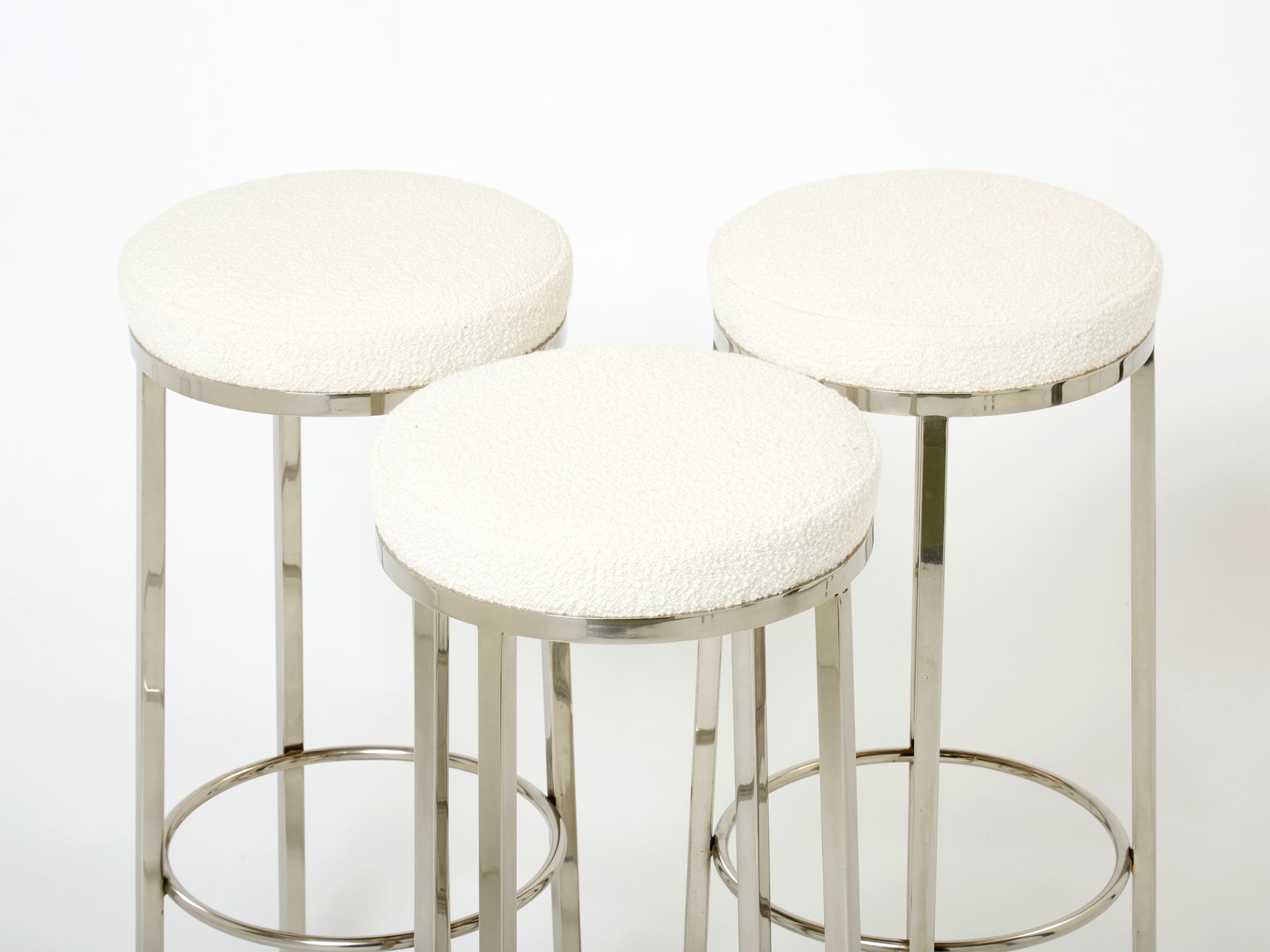 Set de 3 tabourets de bar acier laine bouclé J.C. Mahey 1970