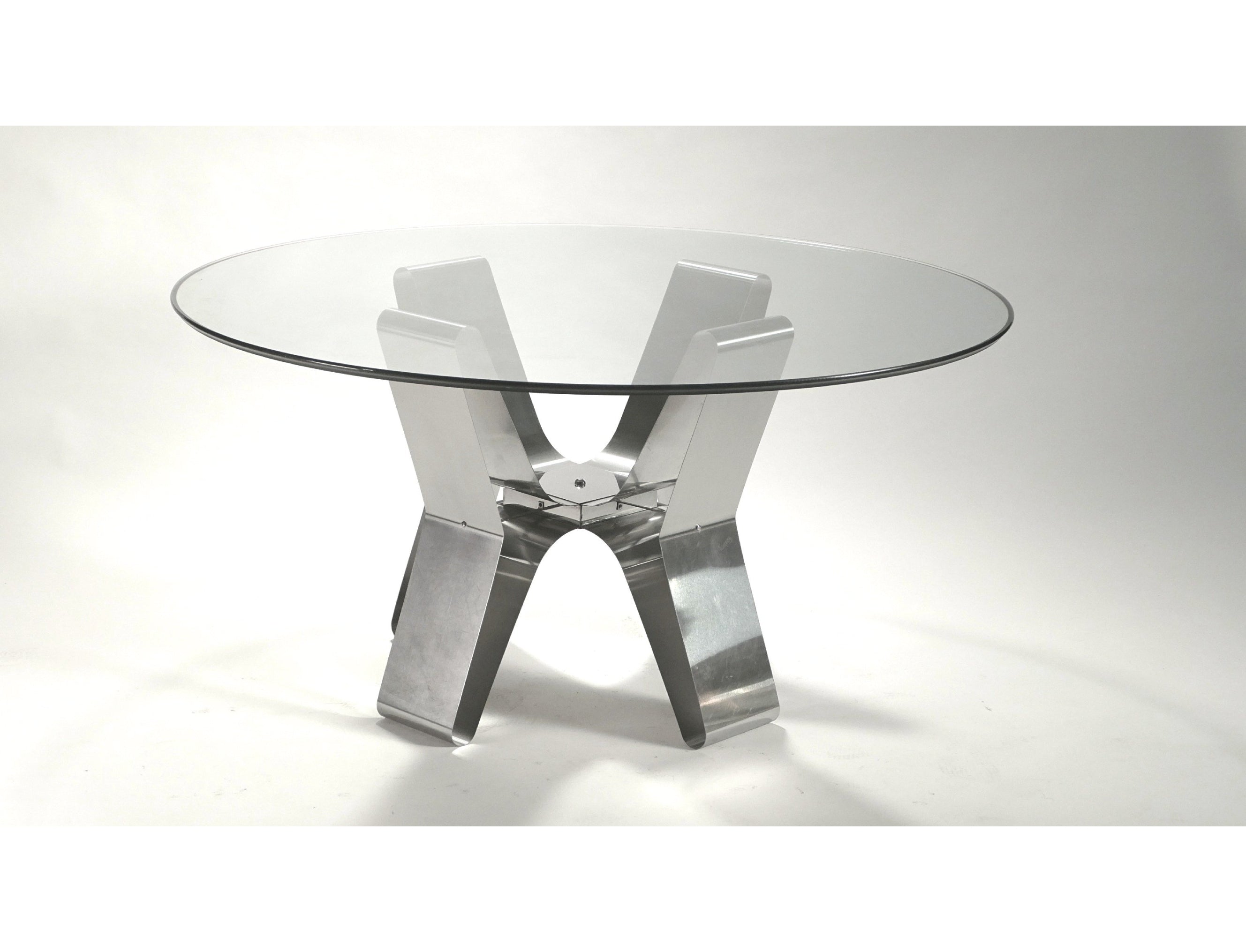 Superbe et rare table de salle à manger en acier brossé de François Monnet datant des