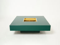 Grande table basse de Willy Rizzo laquée verte laiton 1970