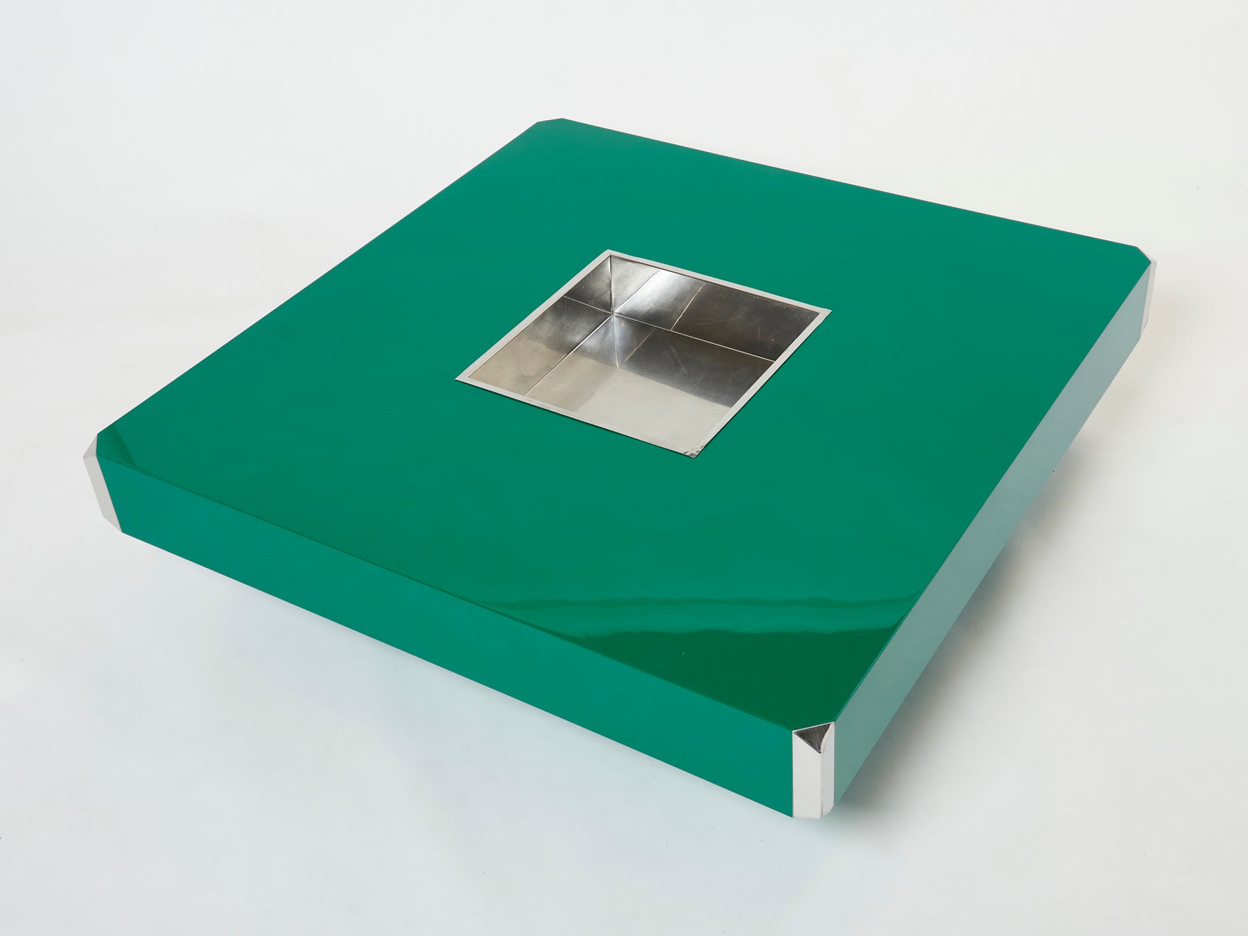 Table basse de Willy Rizzo modèle Alveo carrée laque verte chrome 1970