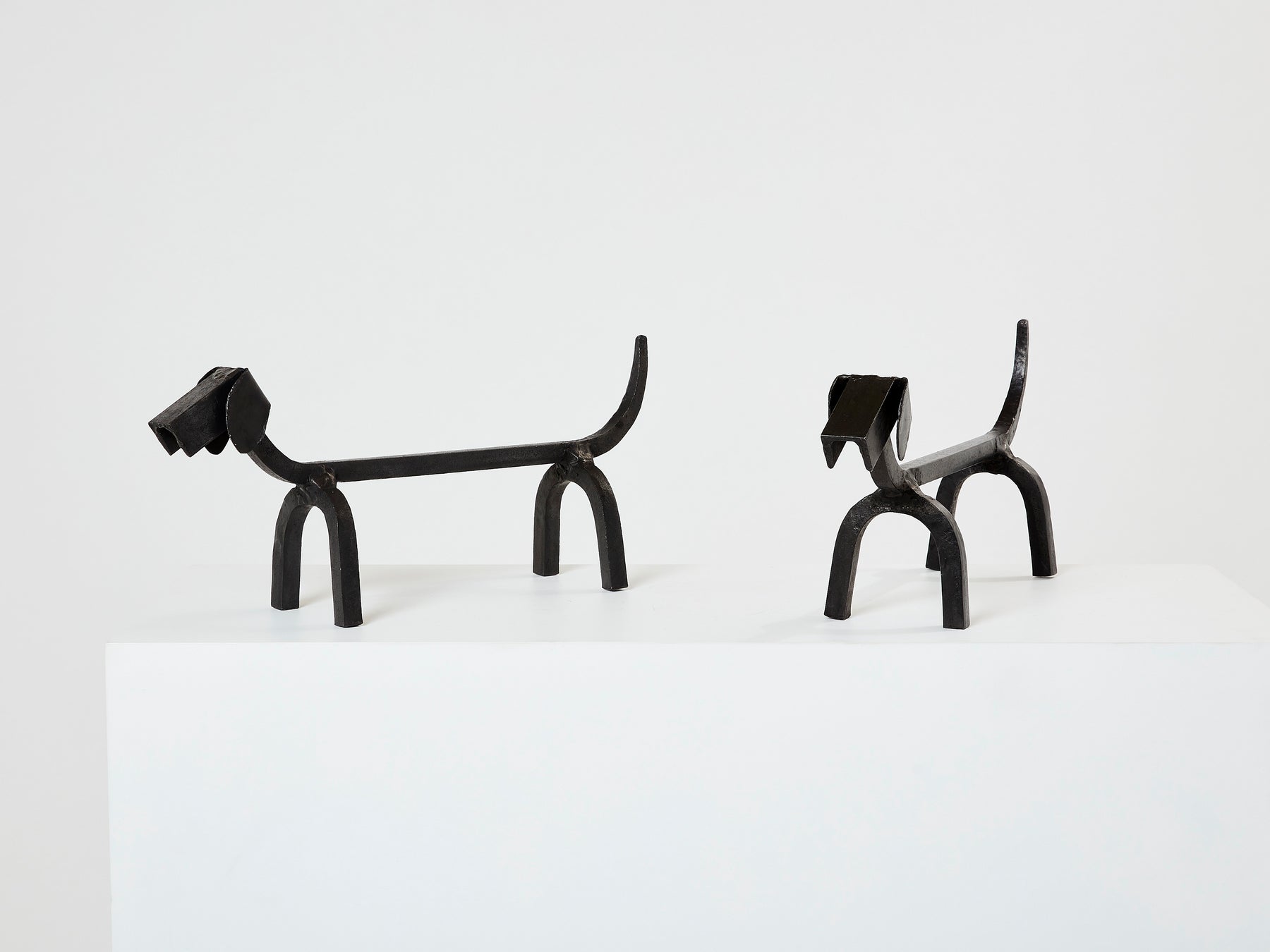 Edouard Schenck dog Dachshund andirons wrought iron 1950s