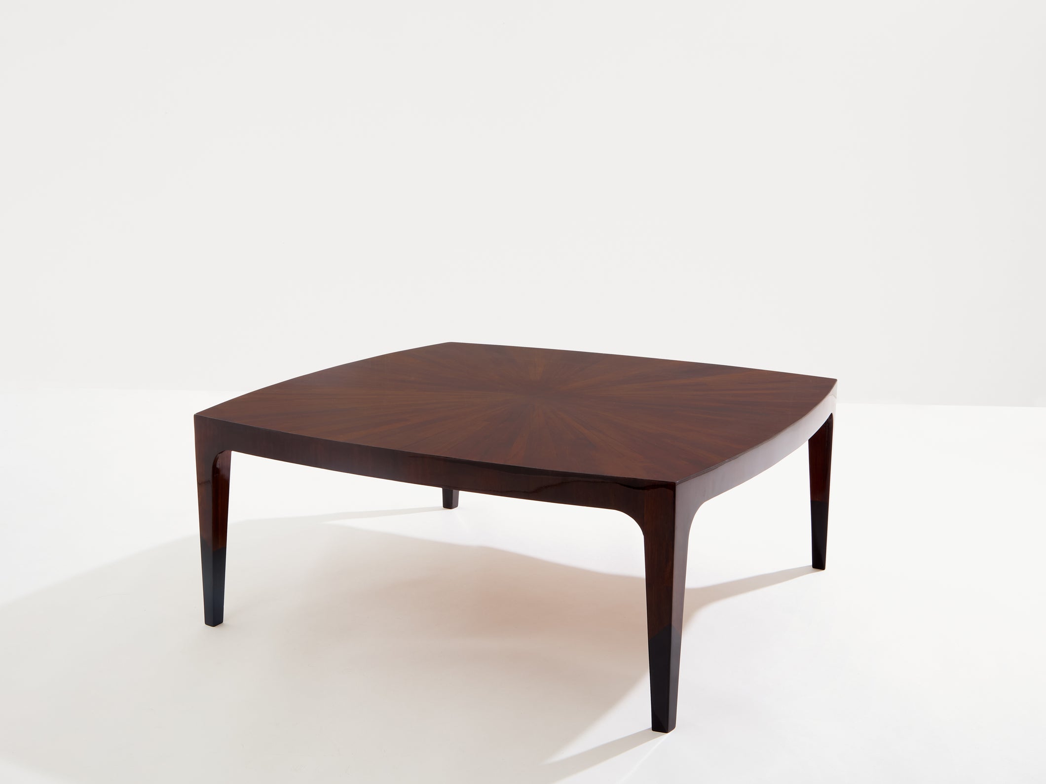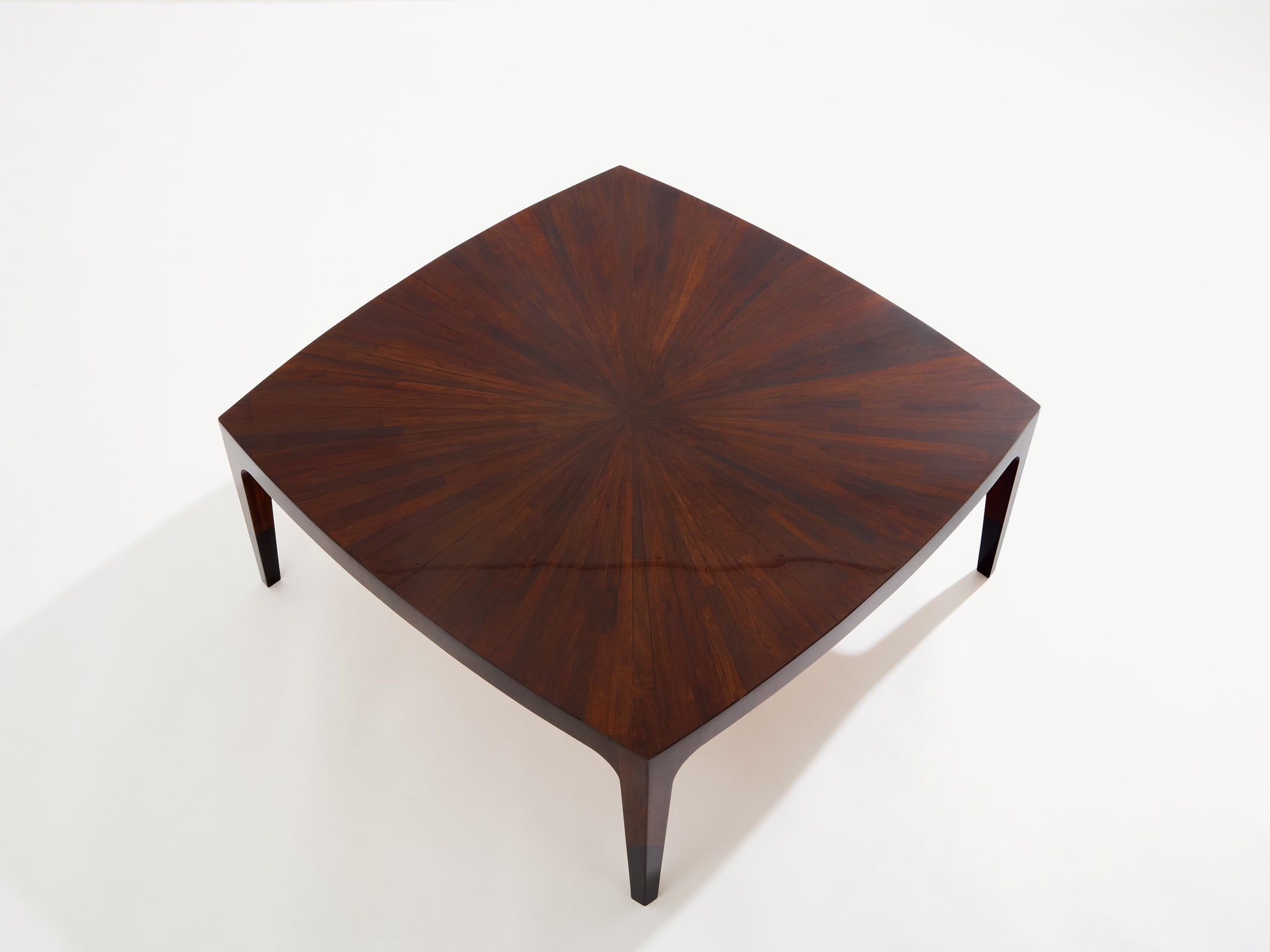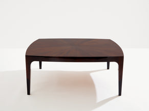 French walnut marquetry square coffee table 1970