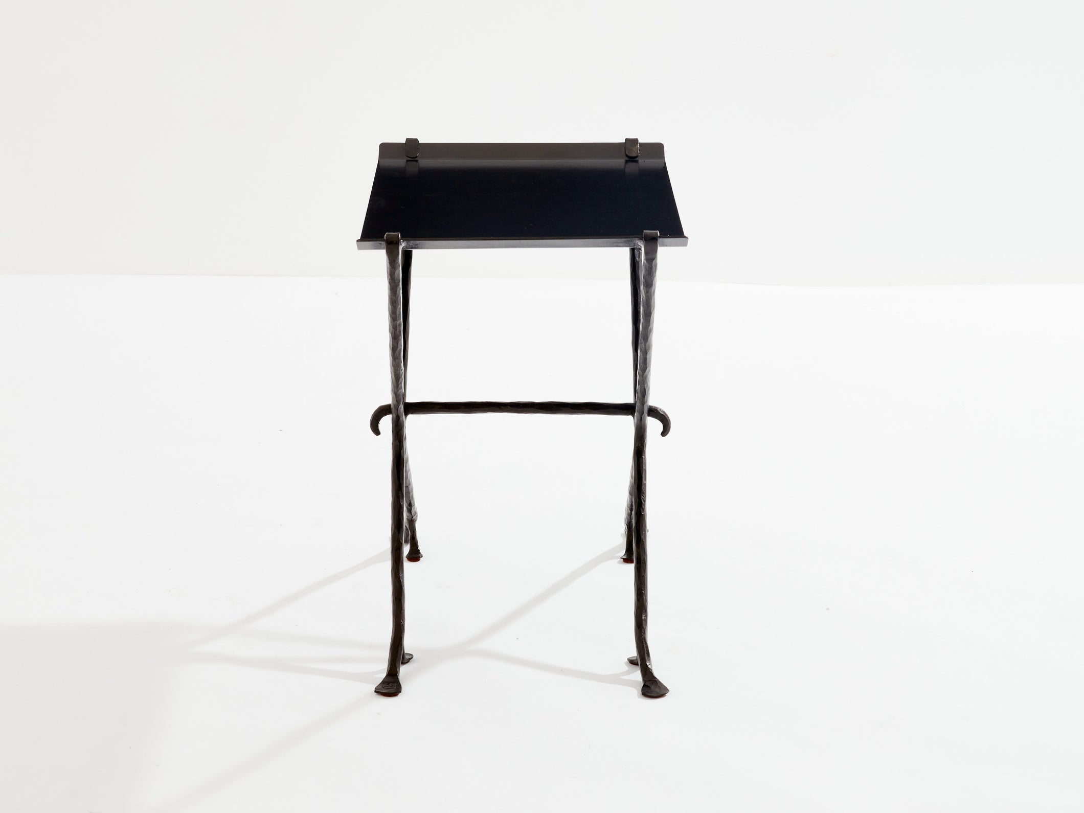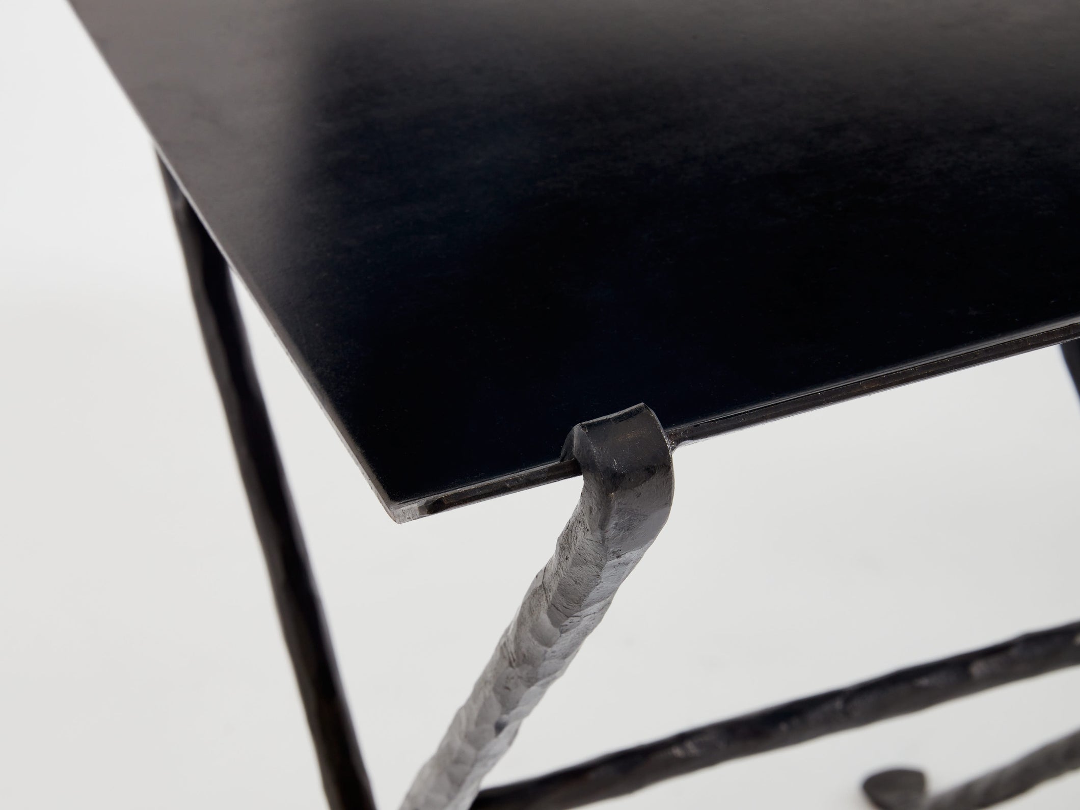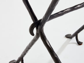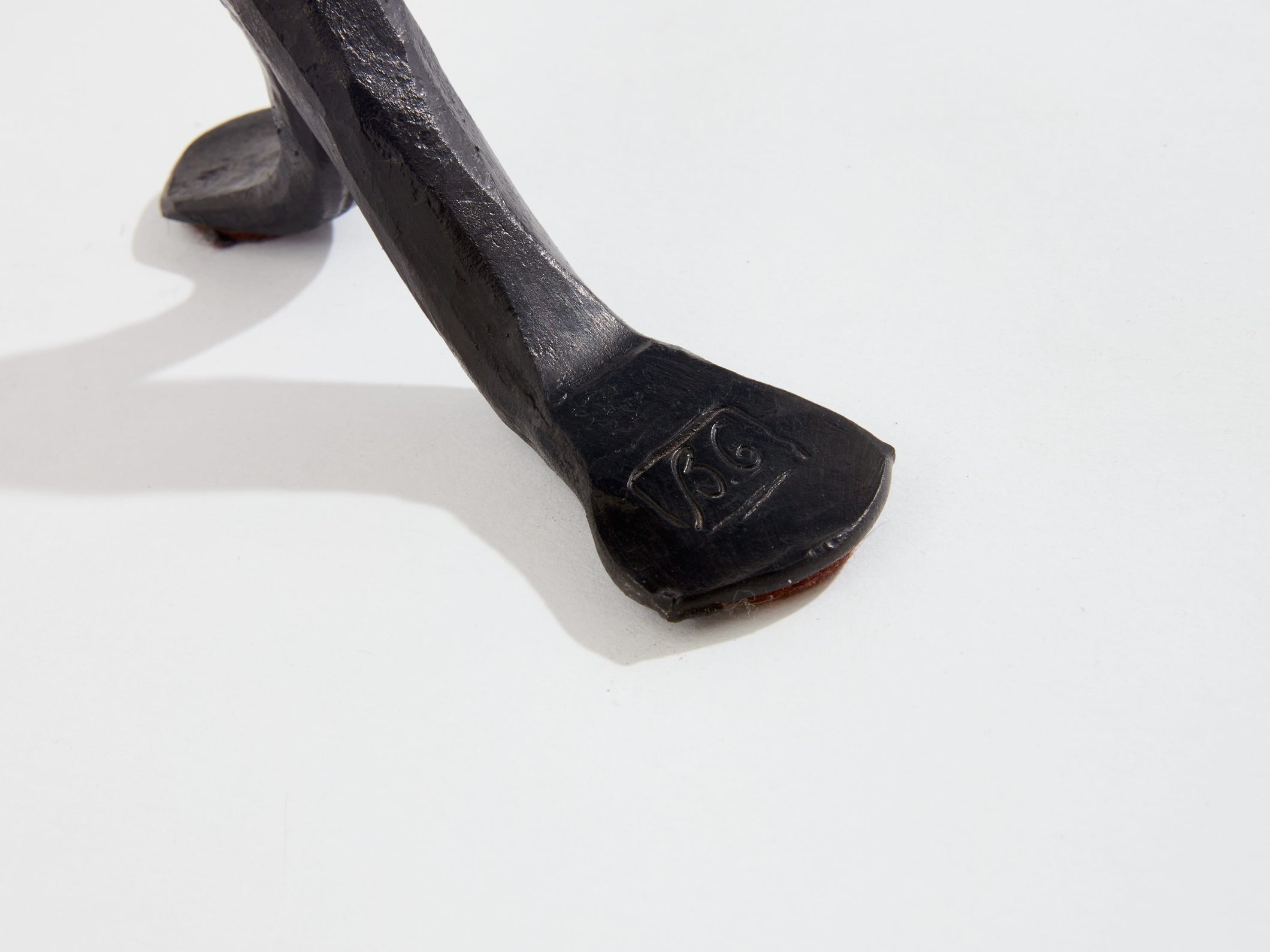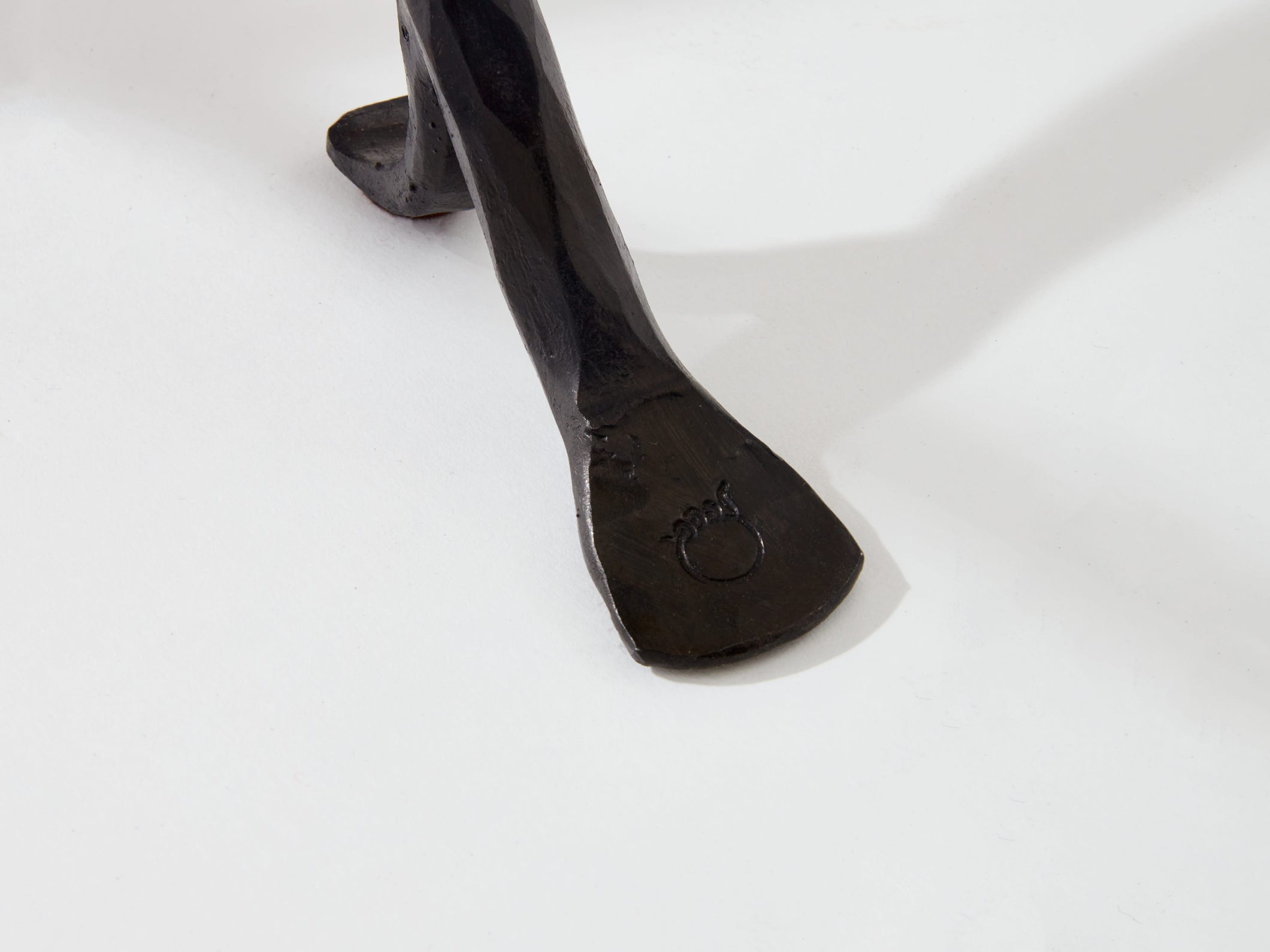 Beautiful brutalist side table table by Elizabeth Garouste & Mattia Bonetti, model Isis, designed in 1987 by the iconic duo, and produced by the famous gallery En attendant les Barbares. Made in wrought iron hand beaten and waxed, this table is clearly a baroque and brutalist statement piece, especially for those that believe passionate expressions of creativity go hand-in-hand with interior design. Elizabeth Garouste & Mattia Bonetti were a team of designers, based in Paris, who brought extraordinarily imaginative designs into the mainstream. Their work, like this gueridon, reflects their idea that furniture design should have no rules in terms of form and materials. The piece is emblematic of the design duo’s commitment to avant-garde, romantic style, and is highly decorative. The table is signed and stamped, and is in mint condition.