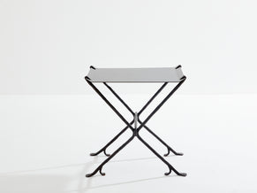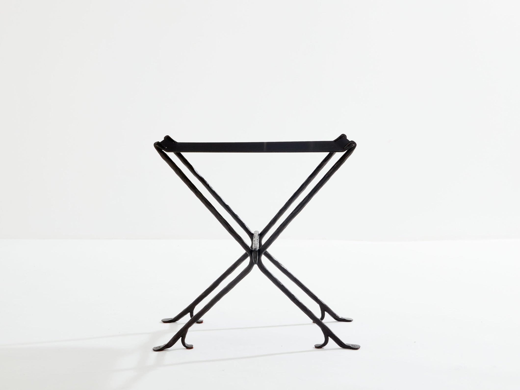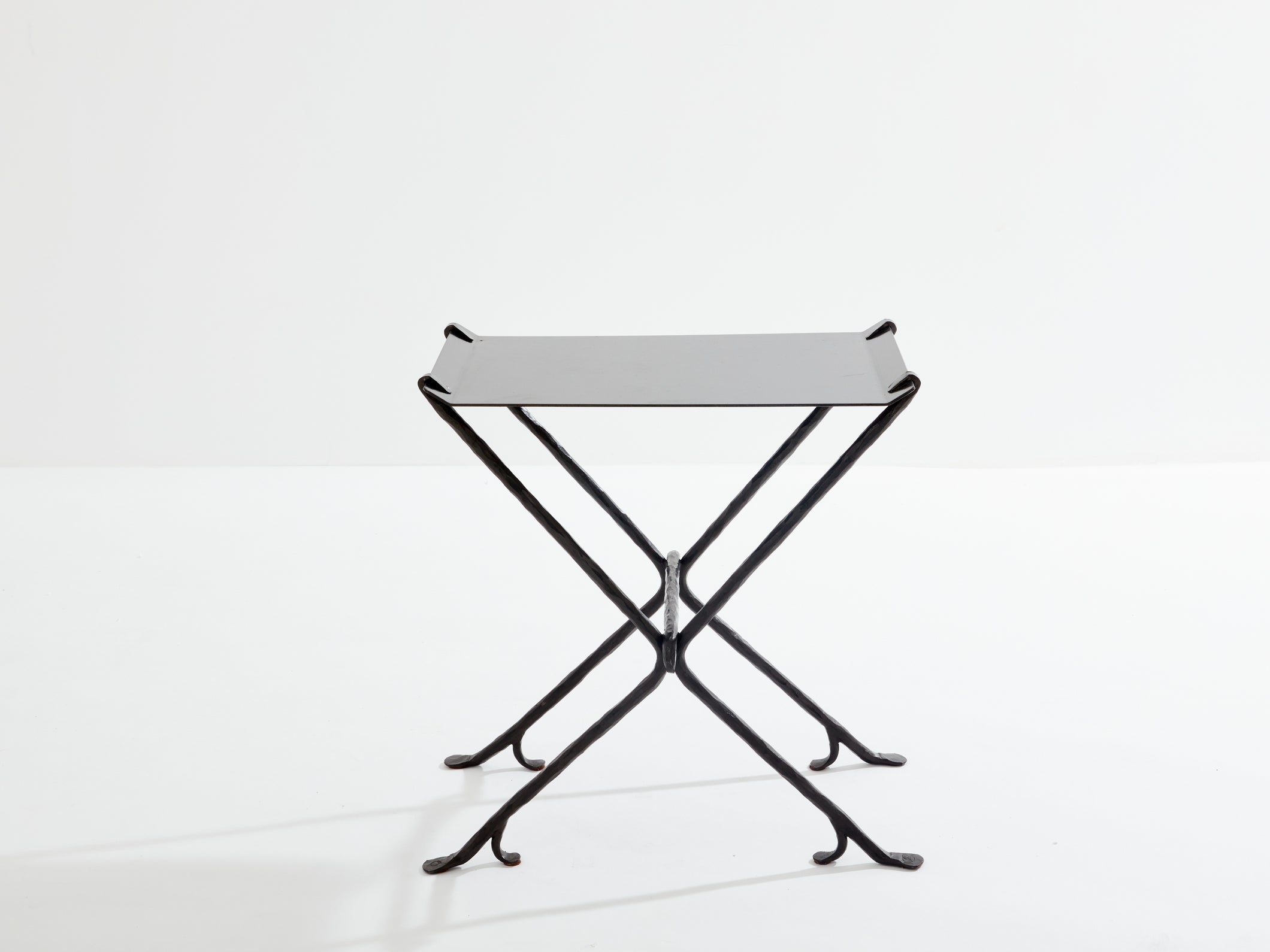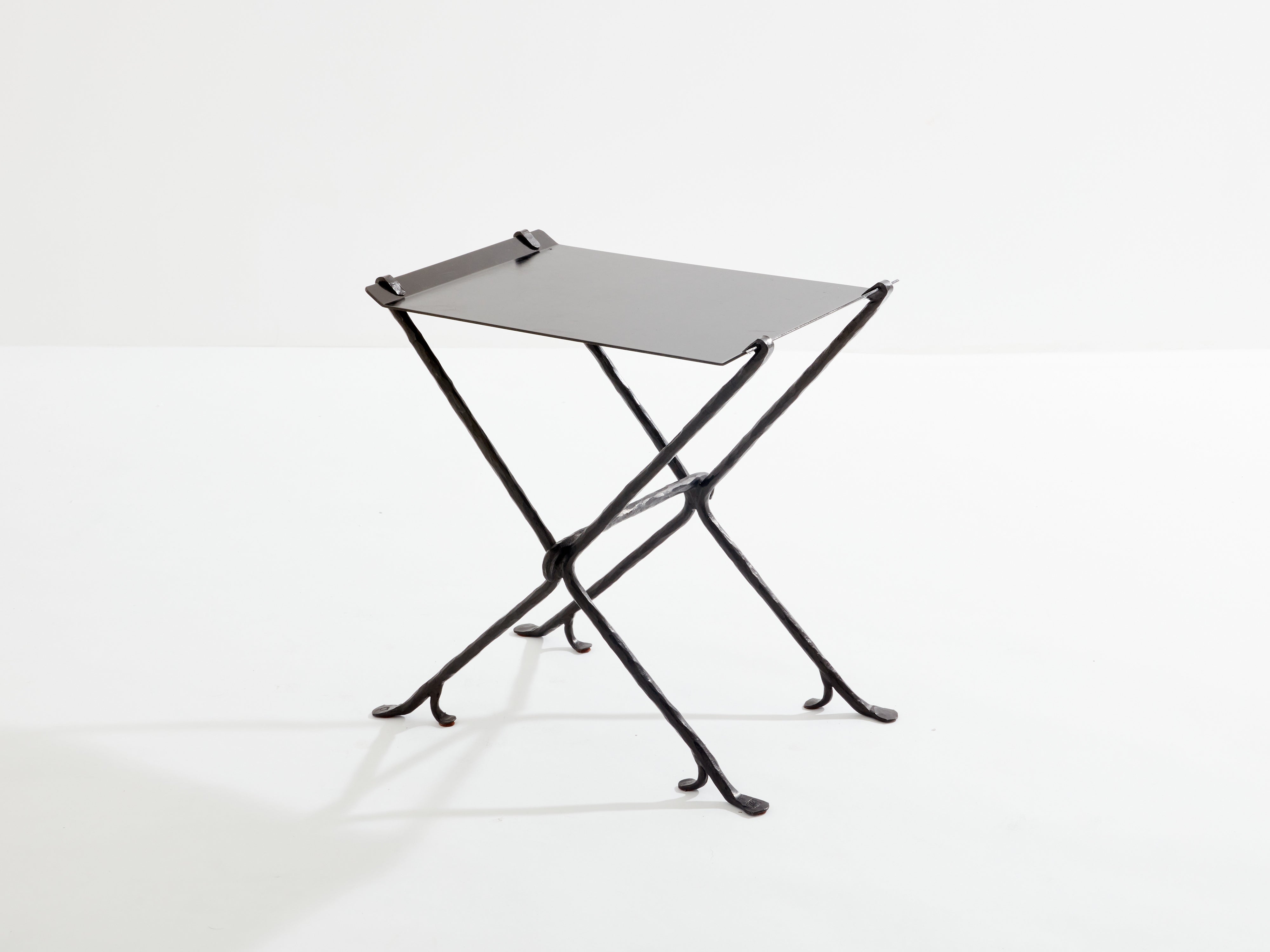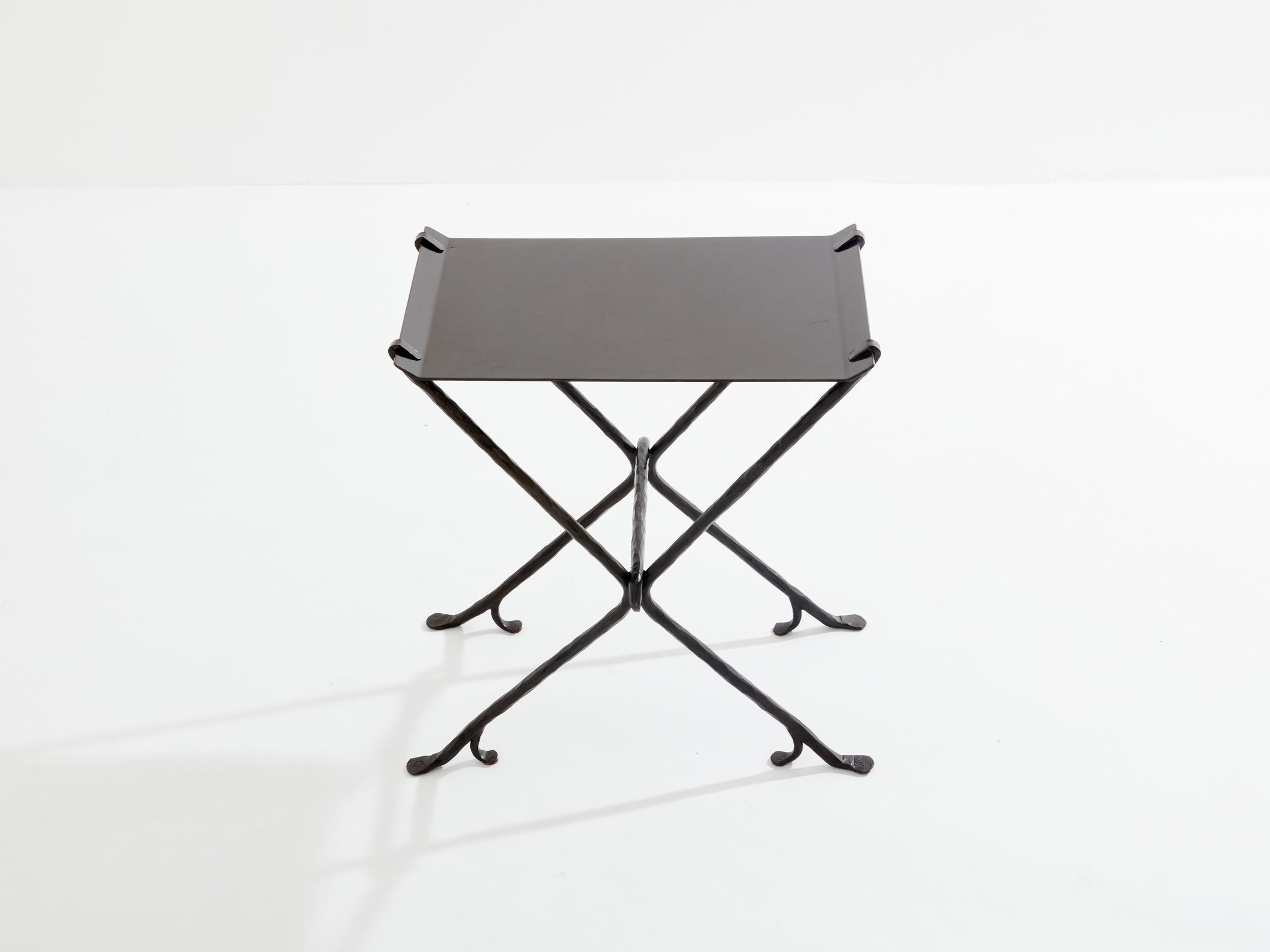 Beautiful brutalist side table table by Elizabeth Garouste & Mattia Bonetti, model Isis, designed in 1987 by the iconic duo, and produced by the famous gallery En attendant les Barbares. Made in wrought iron hand beaten and waxed, this table is clearly a baroque and brutalist statement piece, especially for those that believe passionate expressions of creativity go hand-in-hand with interior design. Elizabeth Garouste & Mattia Bonetti were a team of designers, based in Paris, who brought extraordinarily imaginative designs into the mainstream. Their work, like this gueridon, reflects their idea that furniture design should have no rules in terms of form and materials. The piece is emblematic of the design duo’s commitment to avant-garde, romantic style, and is highly decorative. The table is signed and stamped, and is in mint condition.