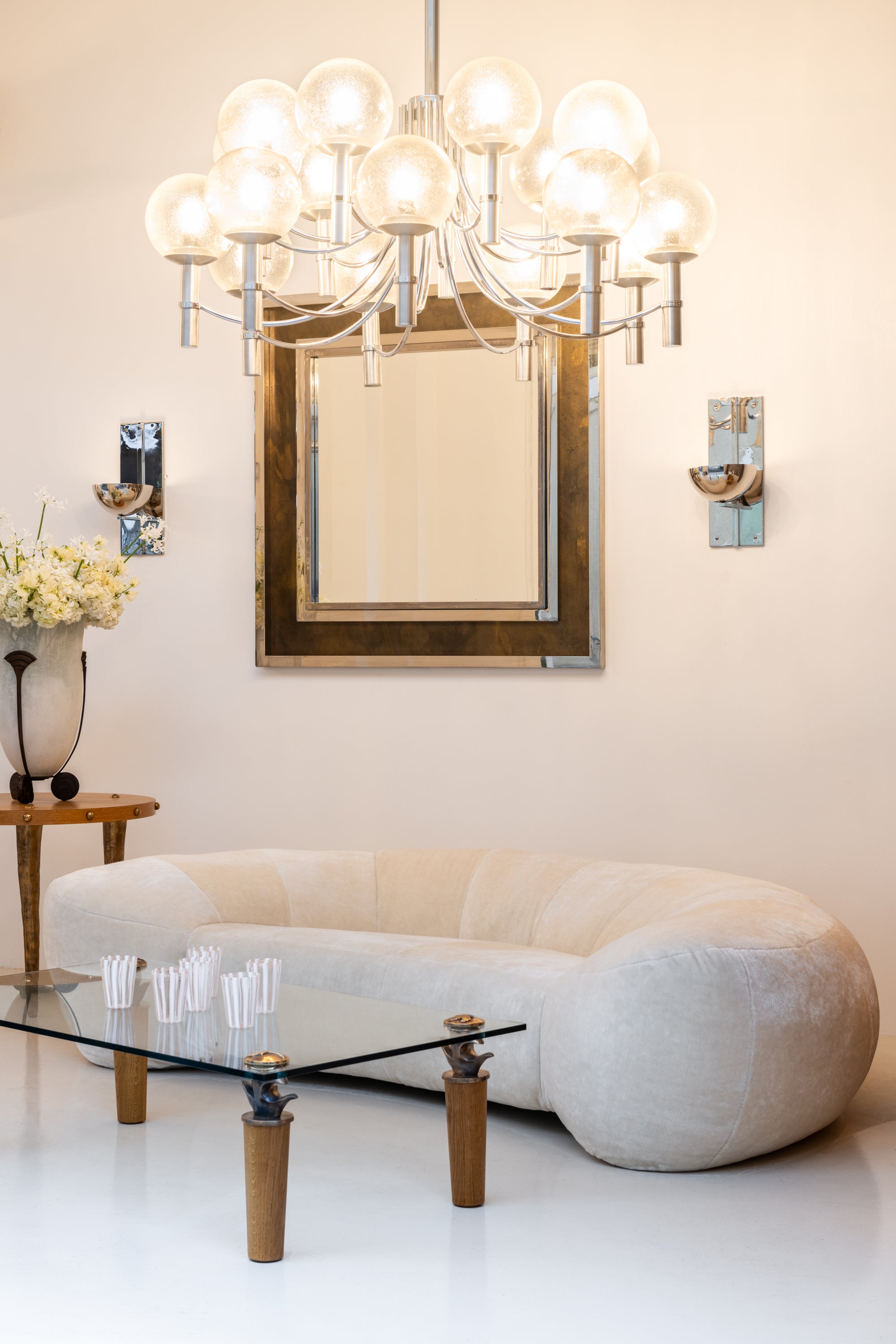 Grand Miroir chrome métal cuivré Industriel par Belgo Chrome 1970