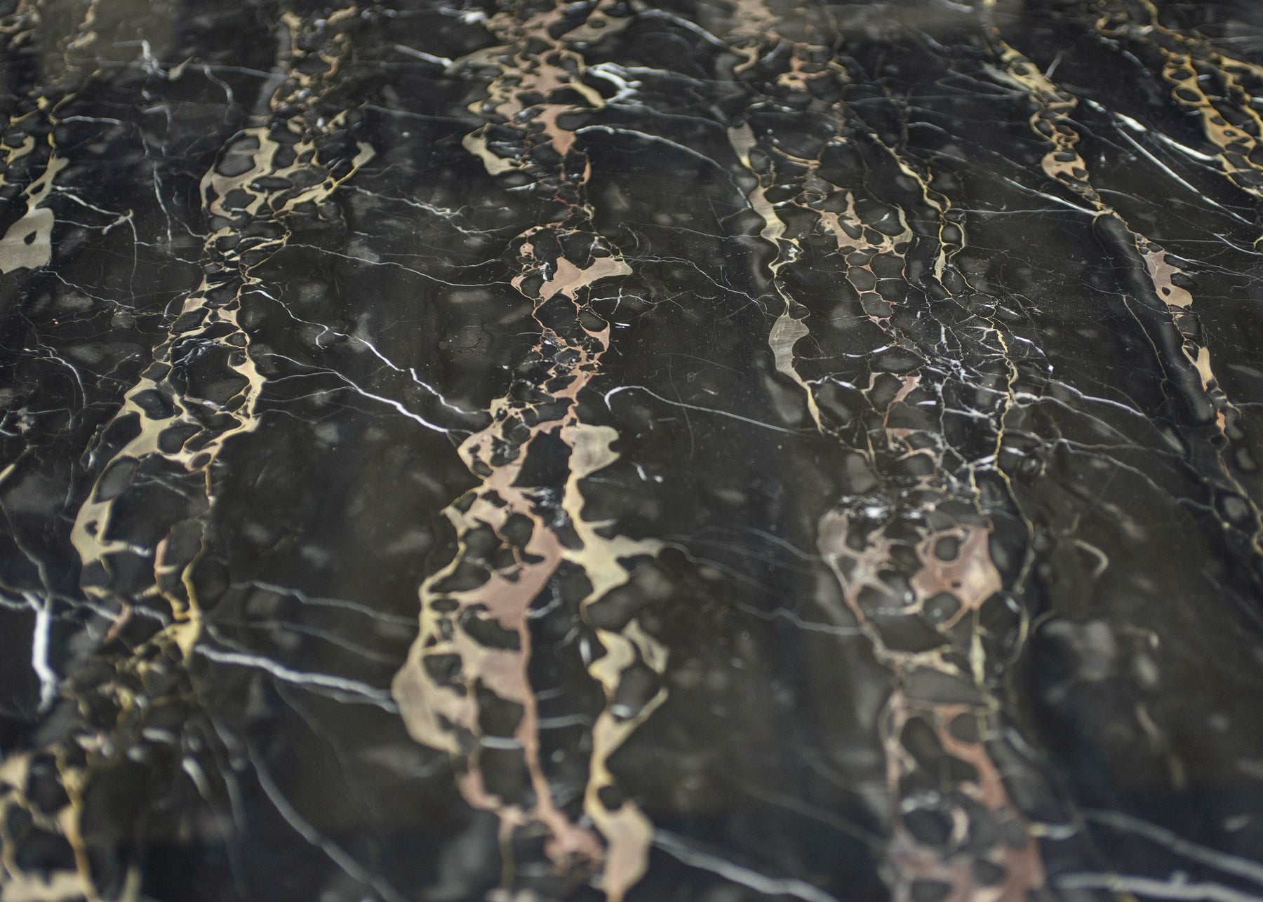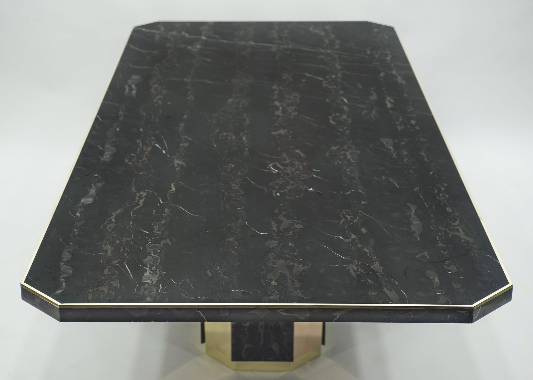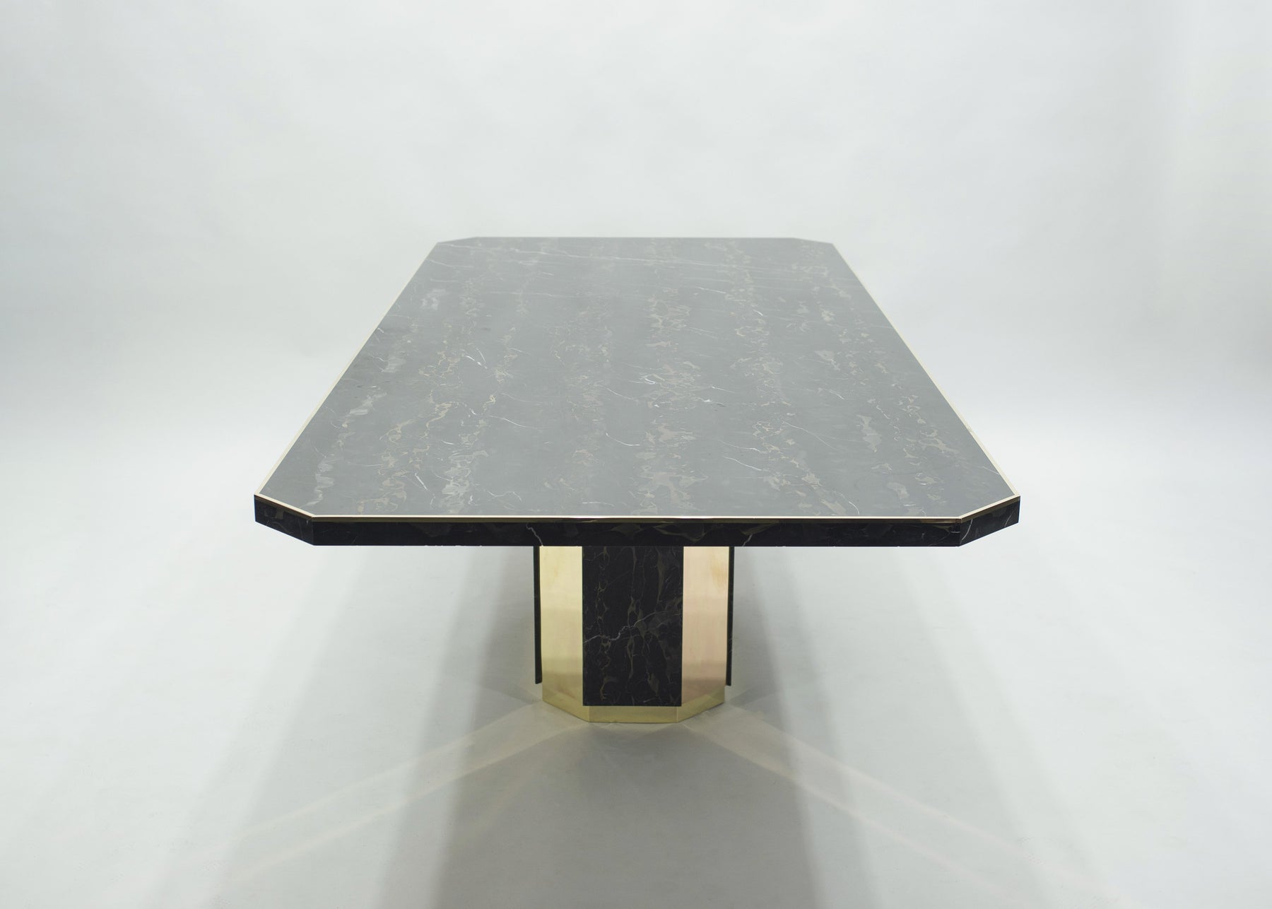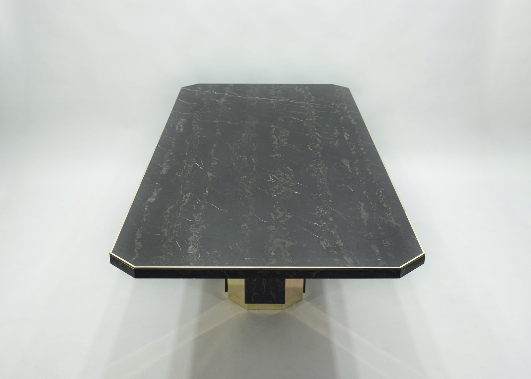 J.C. Mahey for Paco Rabanne black Portoro marble dining table brass 1979