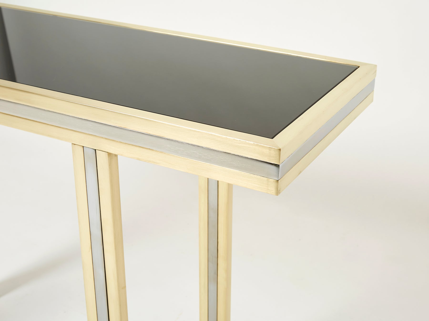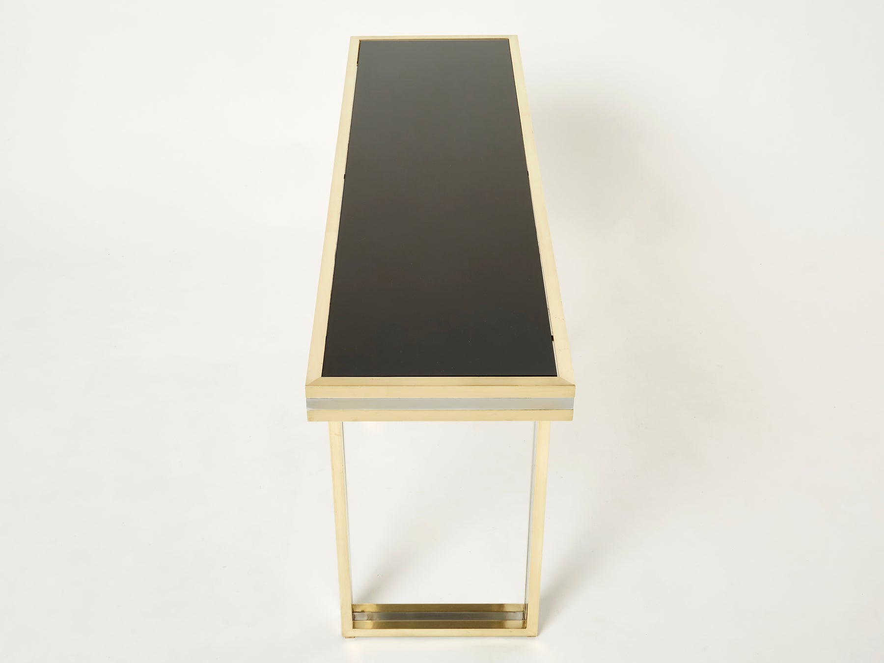 Italian brass chrome black glass console table by Romeo Rega 1970s