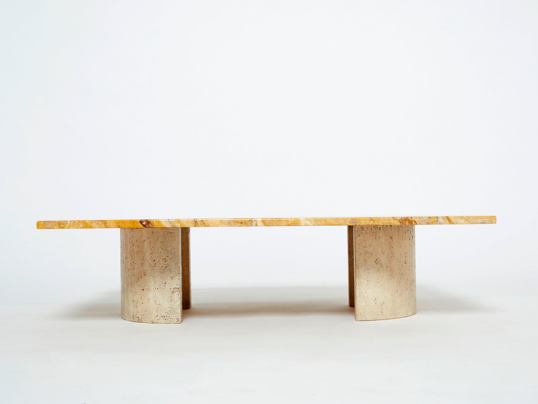 Italian Sienna yellow marble and travertine coffee table 1970s