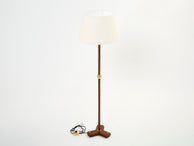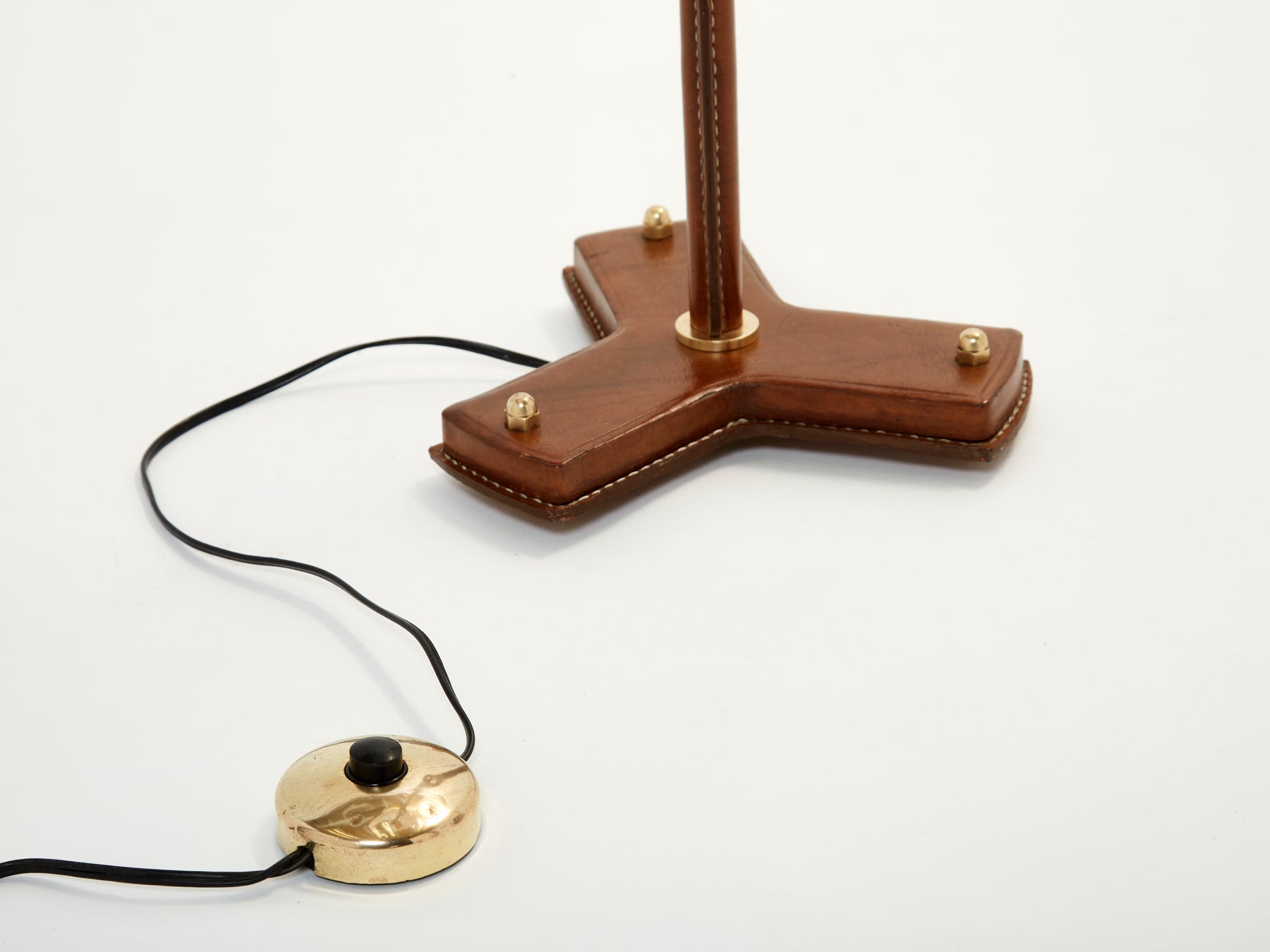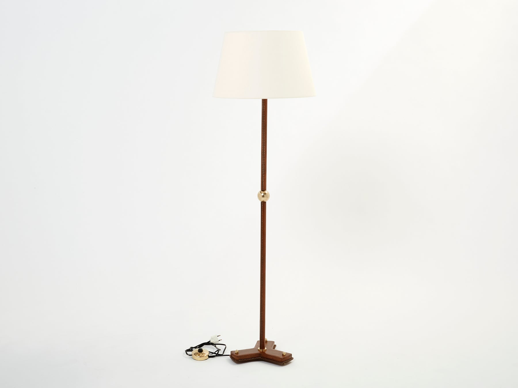 Jacques Adnet modernist stitched brown leather floor lamp 1950s