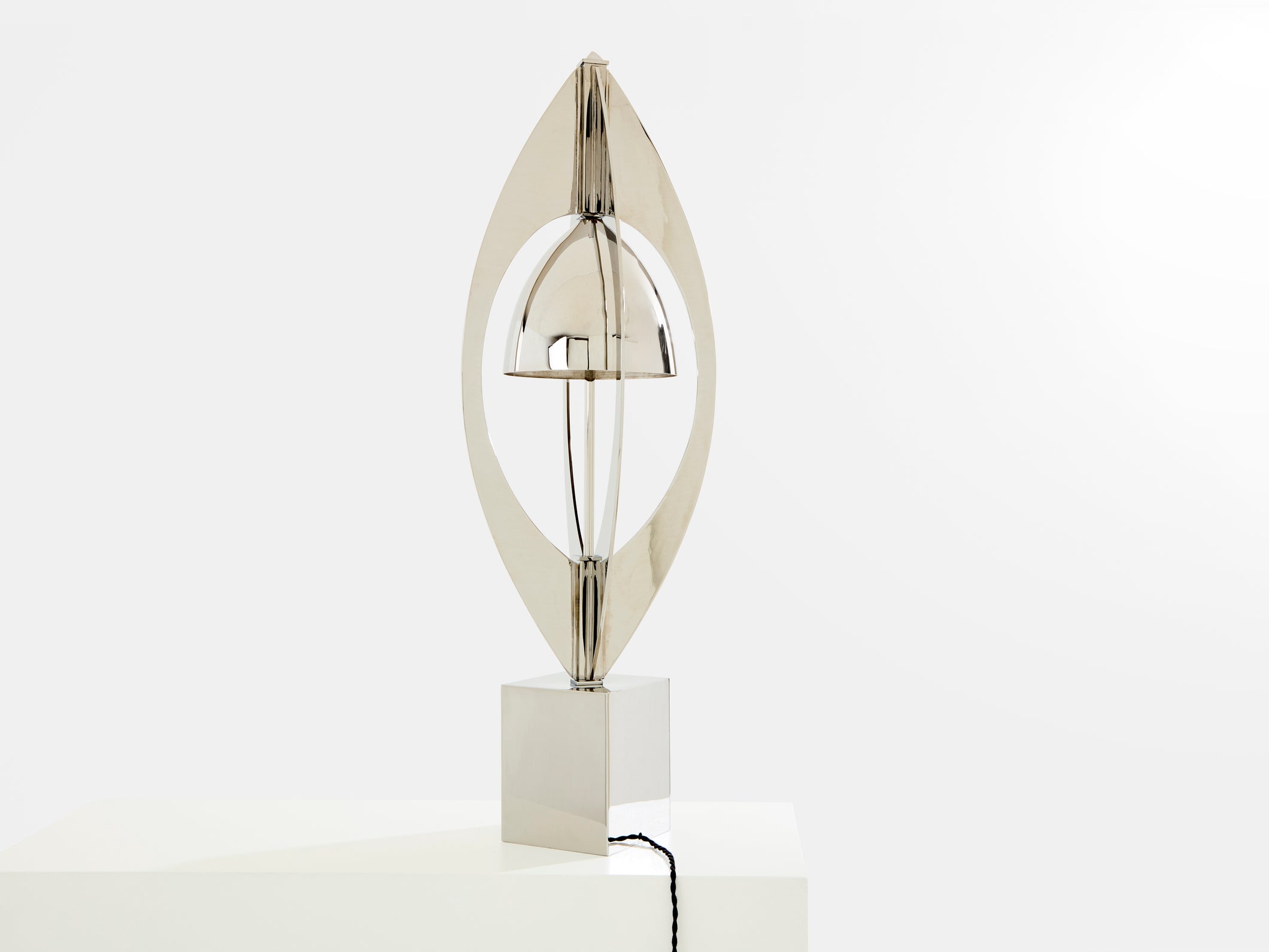 Jacques Charles for Maison Charles Ogive nickel metal lamp 1965