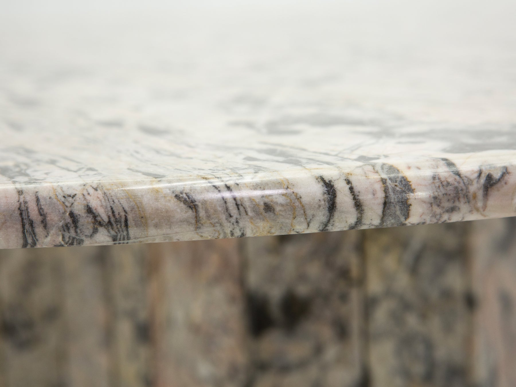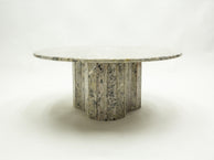 Unique vintage coffee table made in France in the early 1970s from a beautiful sicilian white marble. The thick surface of this coffee table is so slick yet intriguing, making it a centerpiece of the living room. The foot, also made of marble, is curvy and soft. The result is a sophisticated, naturalist look. A rare piece, fully repolished and renewed, found in an amazing condition.