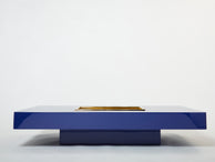 Large Willy Rizzo blue lacquer and brass bar coffee table 1970s