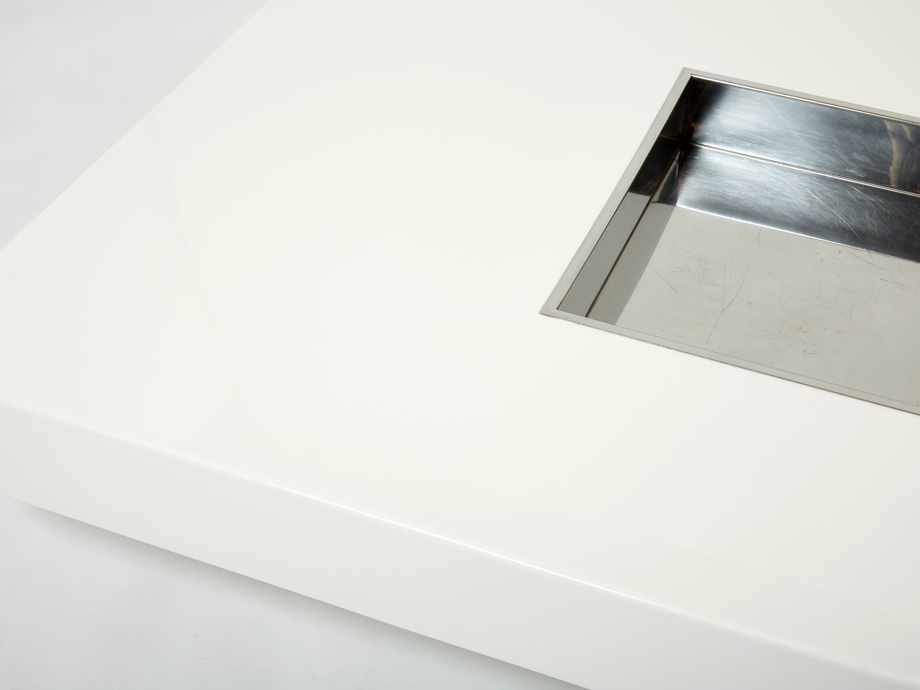 Large Willy Rizzo white lacquer and chrome bar coffee table 1970s