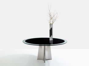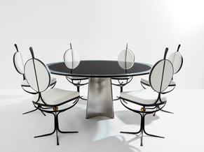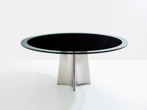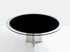 Luigi Saccardo for Arrmet brushed steel black glass dining table 1970s