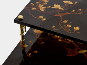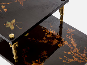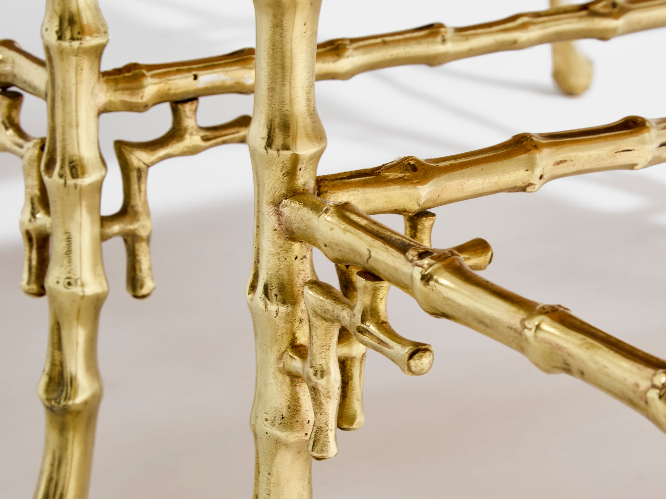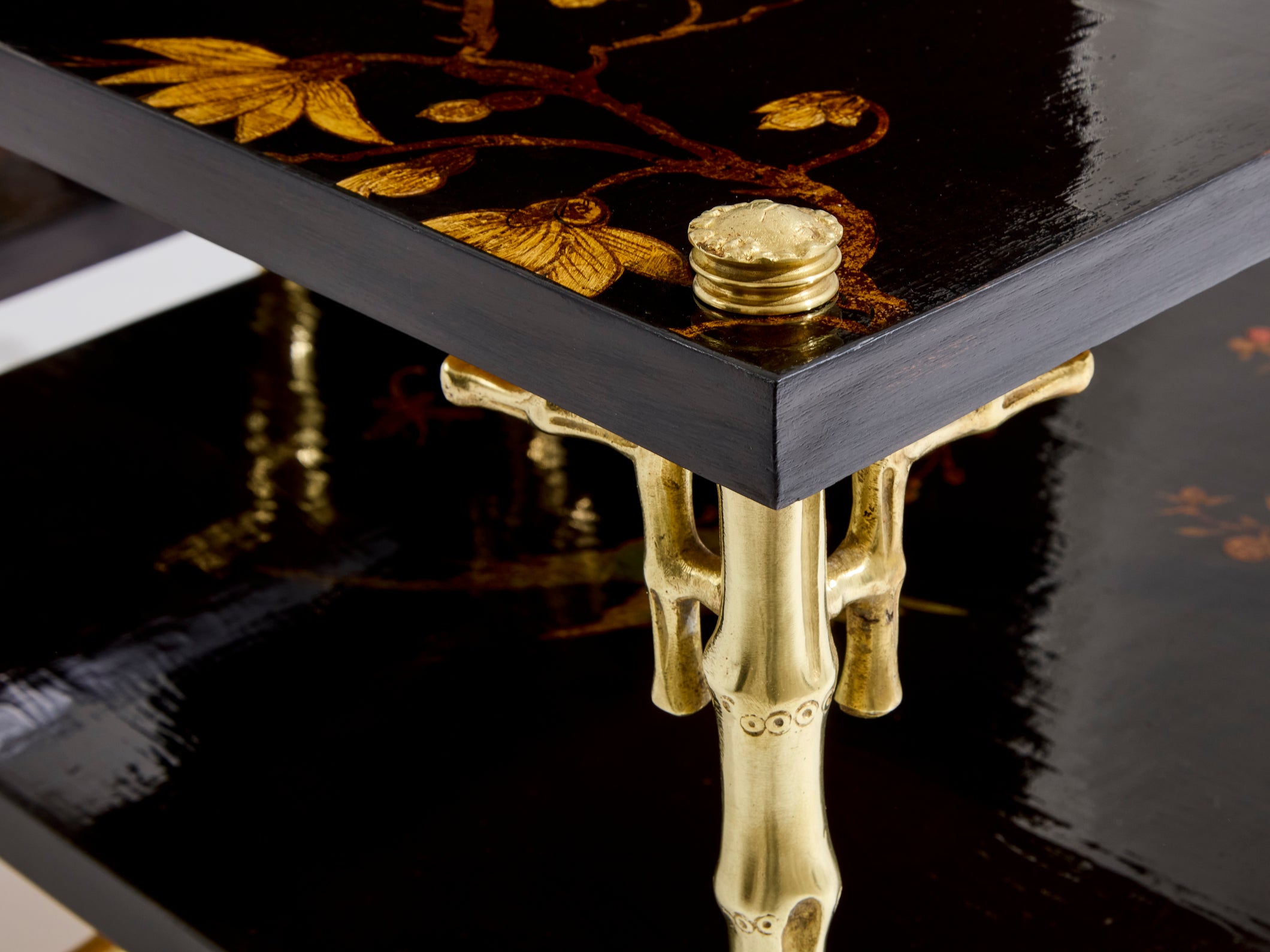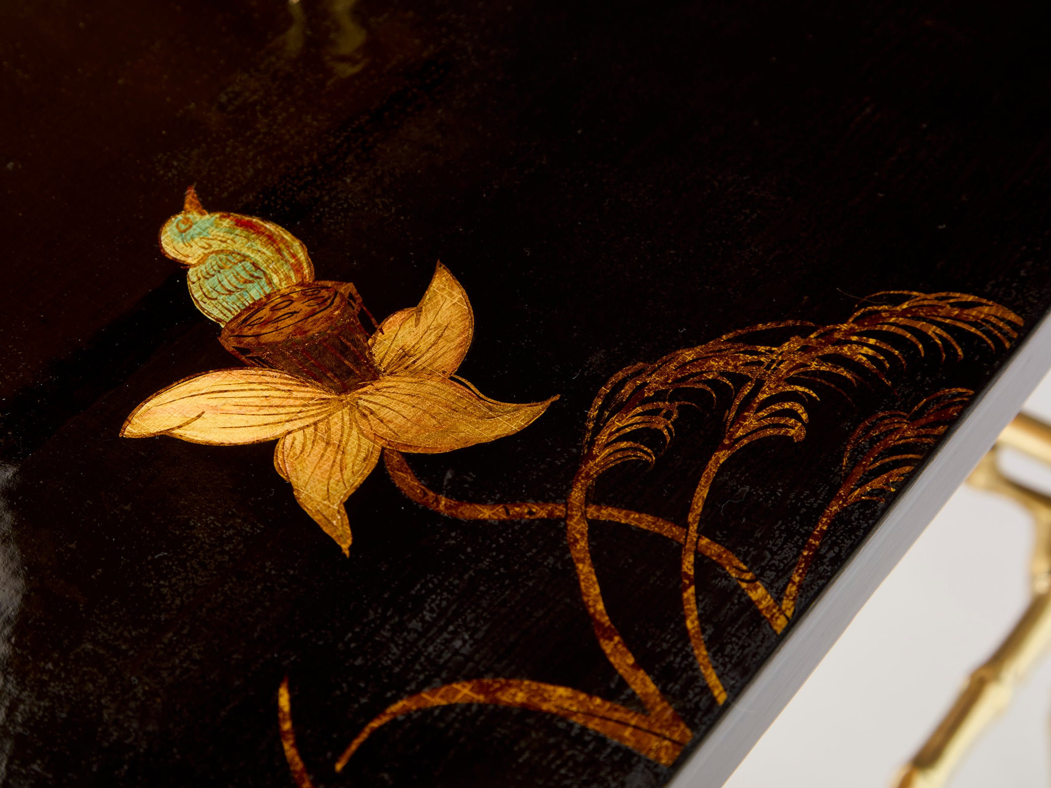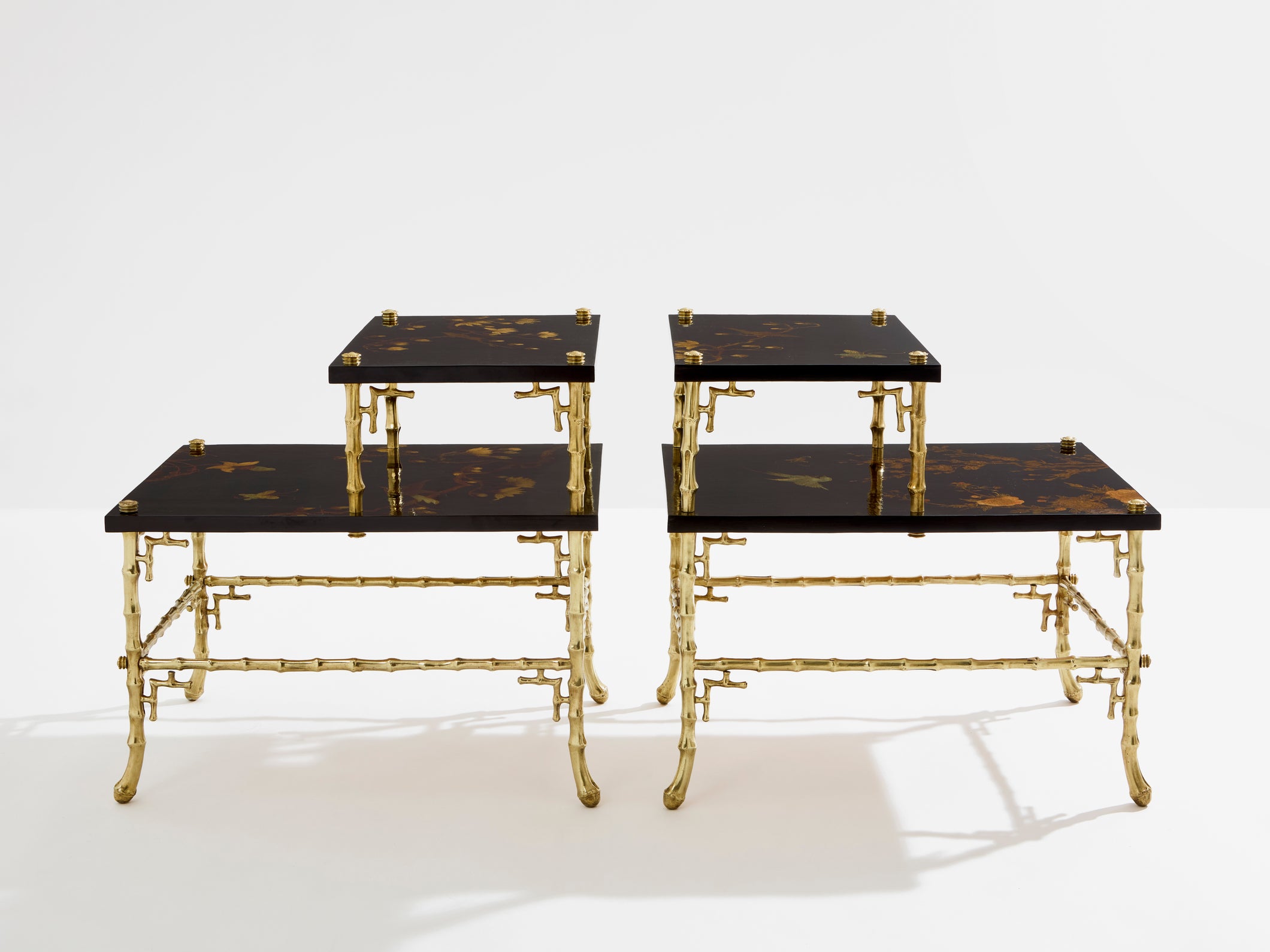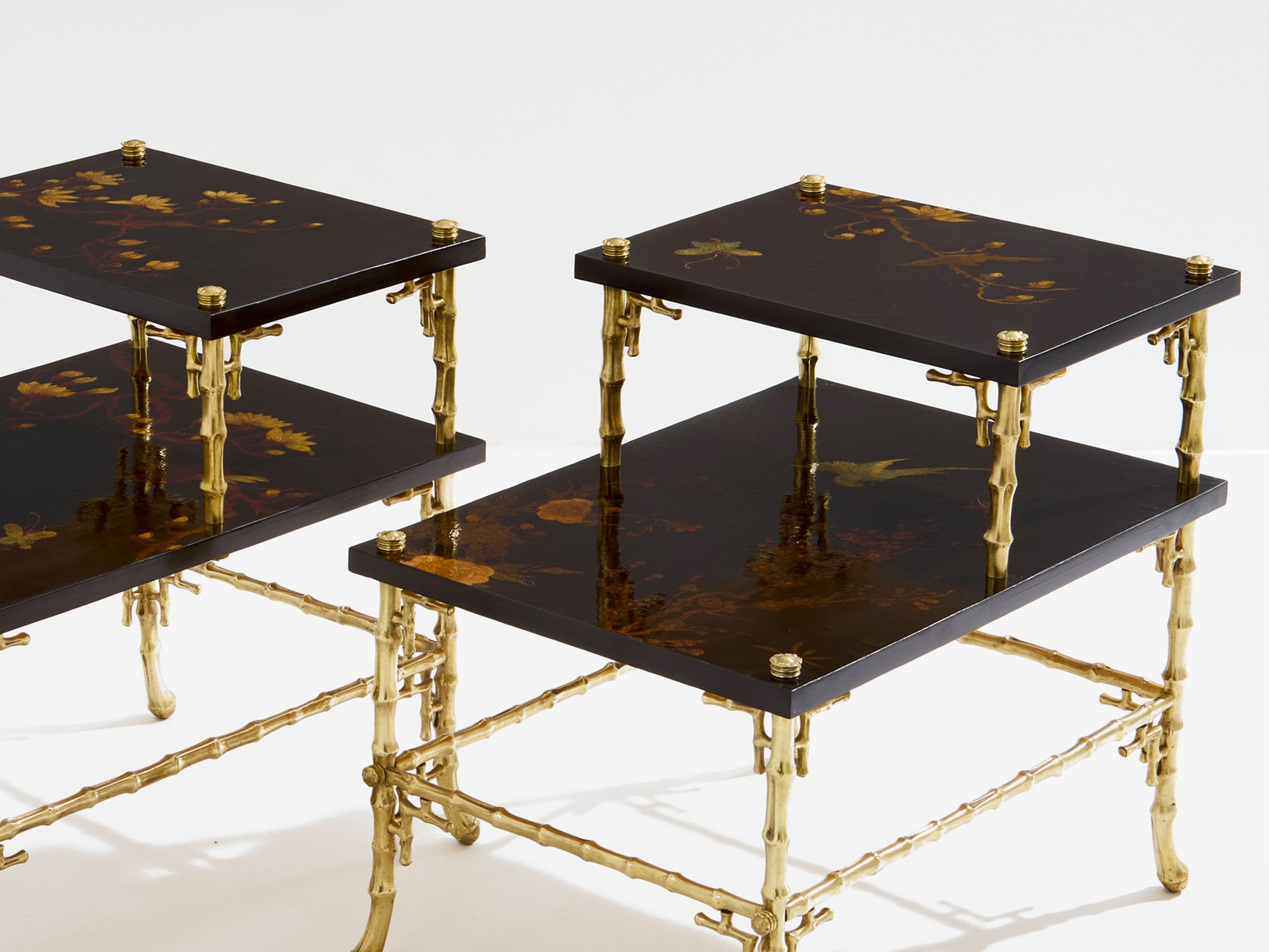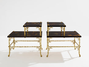 Maison Baguès bamboo bronze chinoiserie lacquered end tables 1940s
