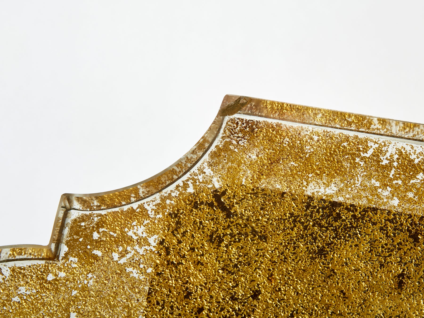 This beautiful coffee table by French house Maison Baguès was created in the early 1950s with solid bamboo shaped bronze structure and an amazing Saint Gobain dalle de sable gilded top. The thick Neoclassical shaped glass top gilded with gold leaf is warm and beautiful, while the bronze bamboo feet details provide an imaginative base for the piece. This table is typical of the Chinese inspired work of Maison Baguès in the 1950s and 1960s, and offers a timeless, sophisticated look, with plenty of amazing details. The bronze structure has been fully cleaned, while the gilded glass top has remained untouched, with a beautiful gilded patina. The table has been fully restored, and is now found in a beautiful condition.