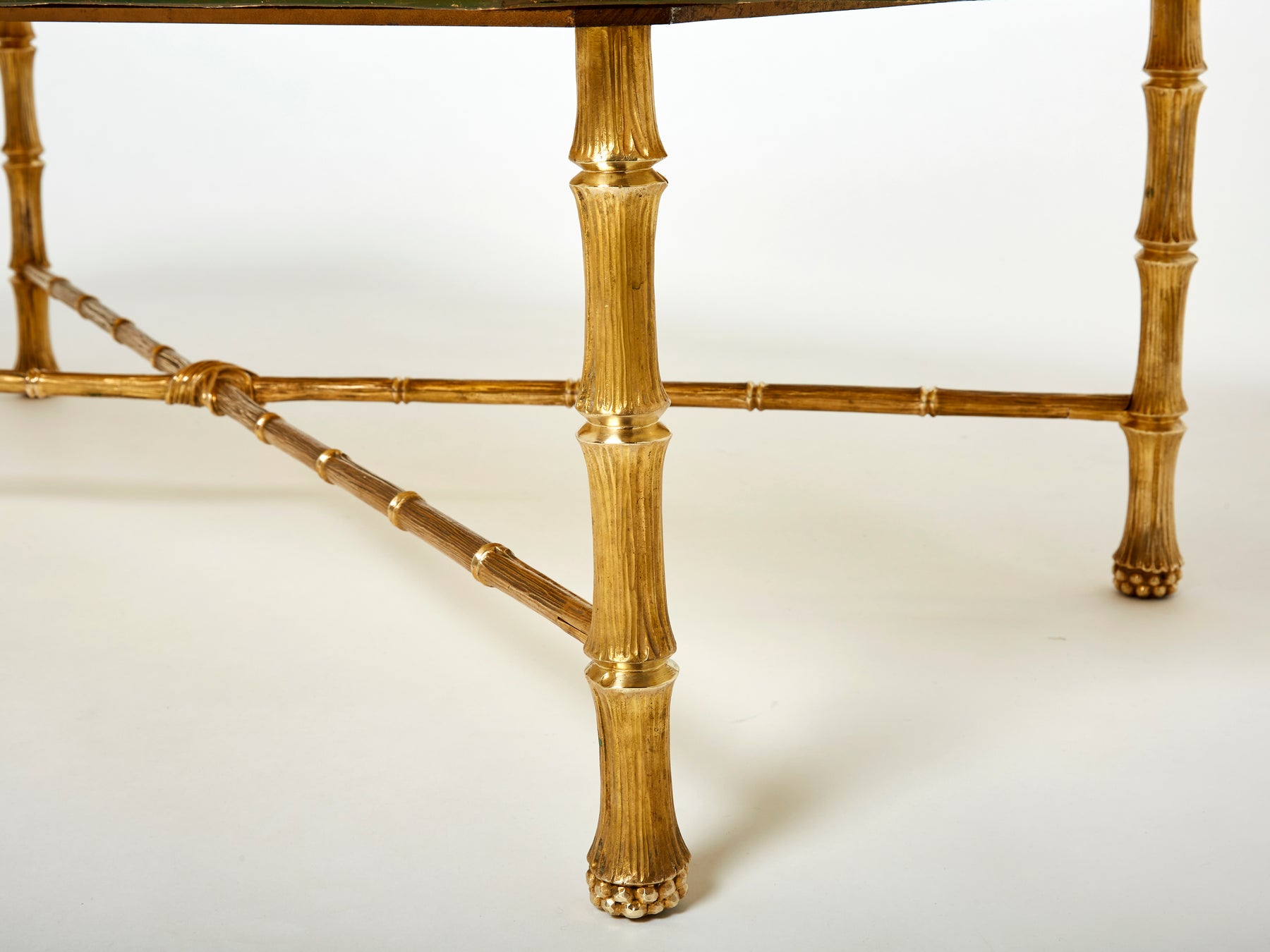 Maison Baguès bronze Saint Gobain gilded glass coffee table 1950s