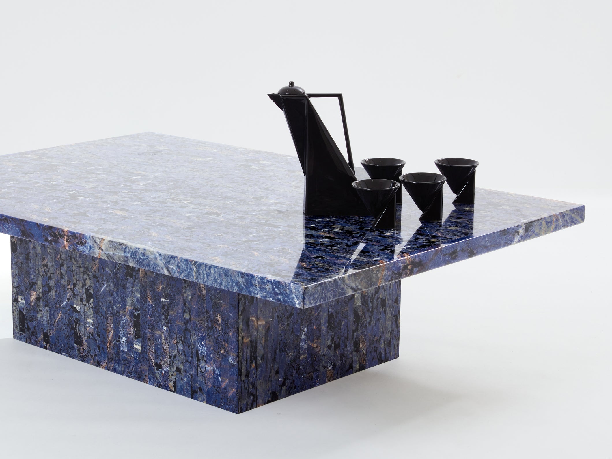 Maison Jansen Lapis Lazuli marquetry coffee table 1970