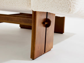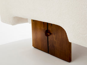 Pair of brutalist Italian armchairs walnut and chenille velvet 1960s