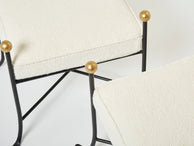 Pair of French 1950s wrought iron and gold leaf bouclé stools
