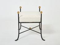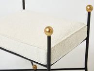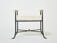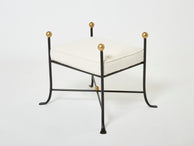 Beautiful pair of French 1950s wrought iron and gold leaf stools, by a follower of Jean Royère, fully restored and reupholstered with wool bouclé by Lelievre.