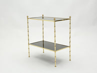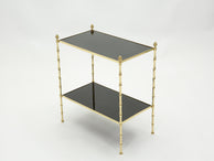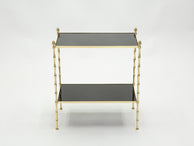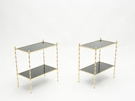 Pair of French Maison Baguès bamboo brass black top two-tier end tables 1960s