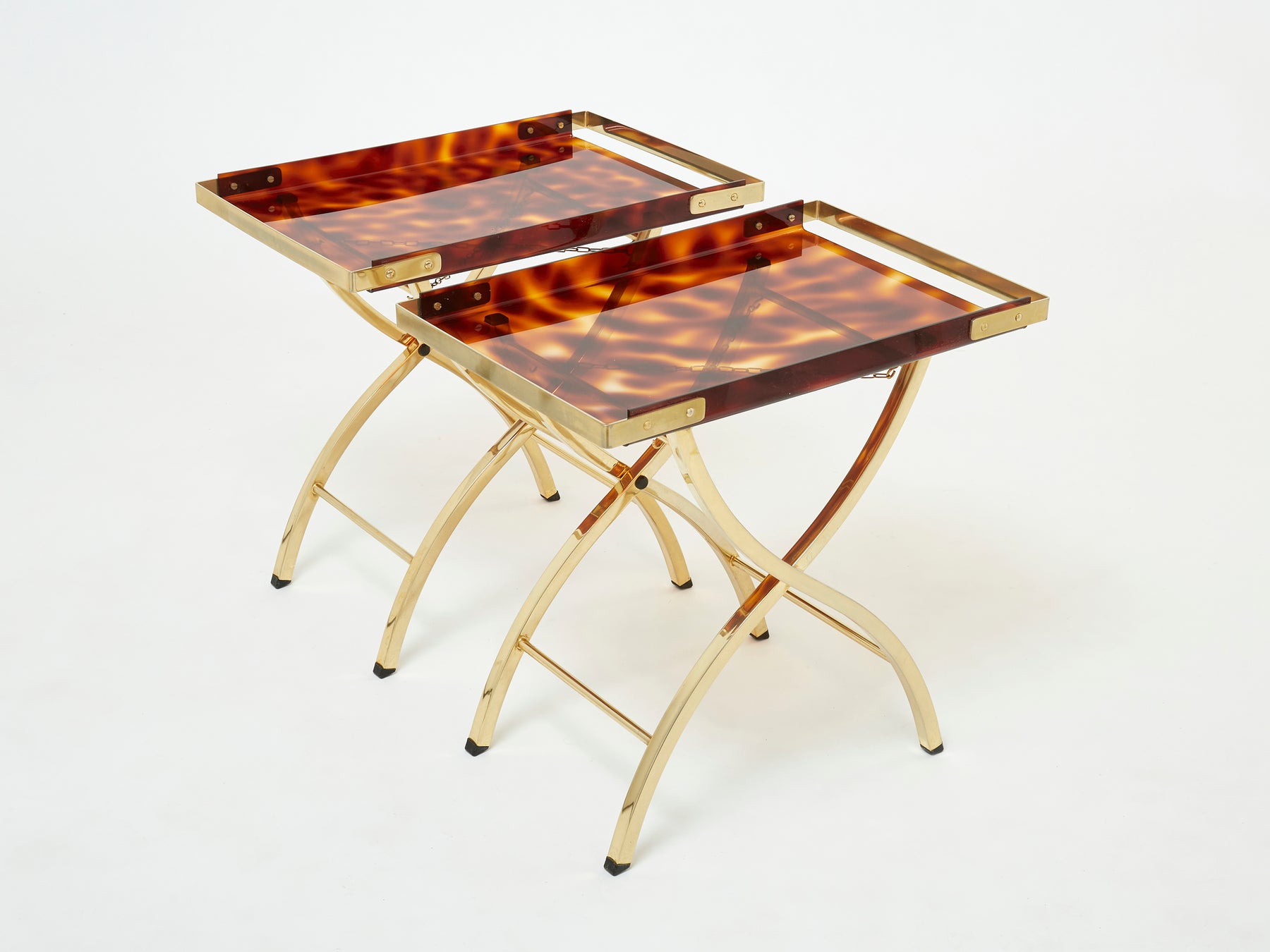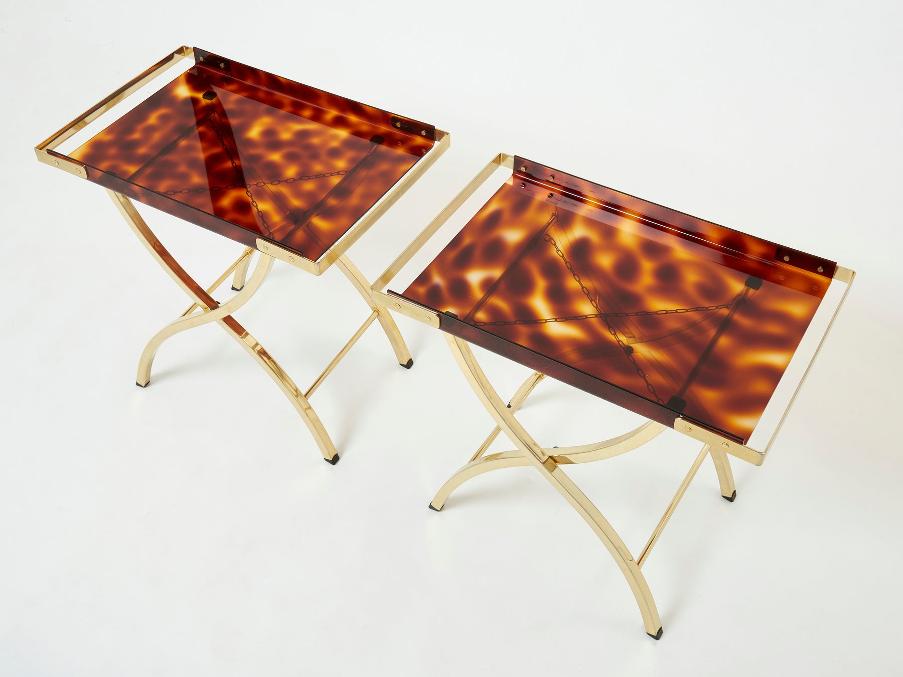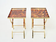 Pair of French side tray tables Faux Tortoise brass Maison Mercier 1970s