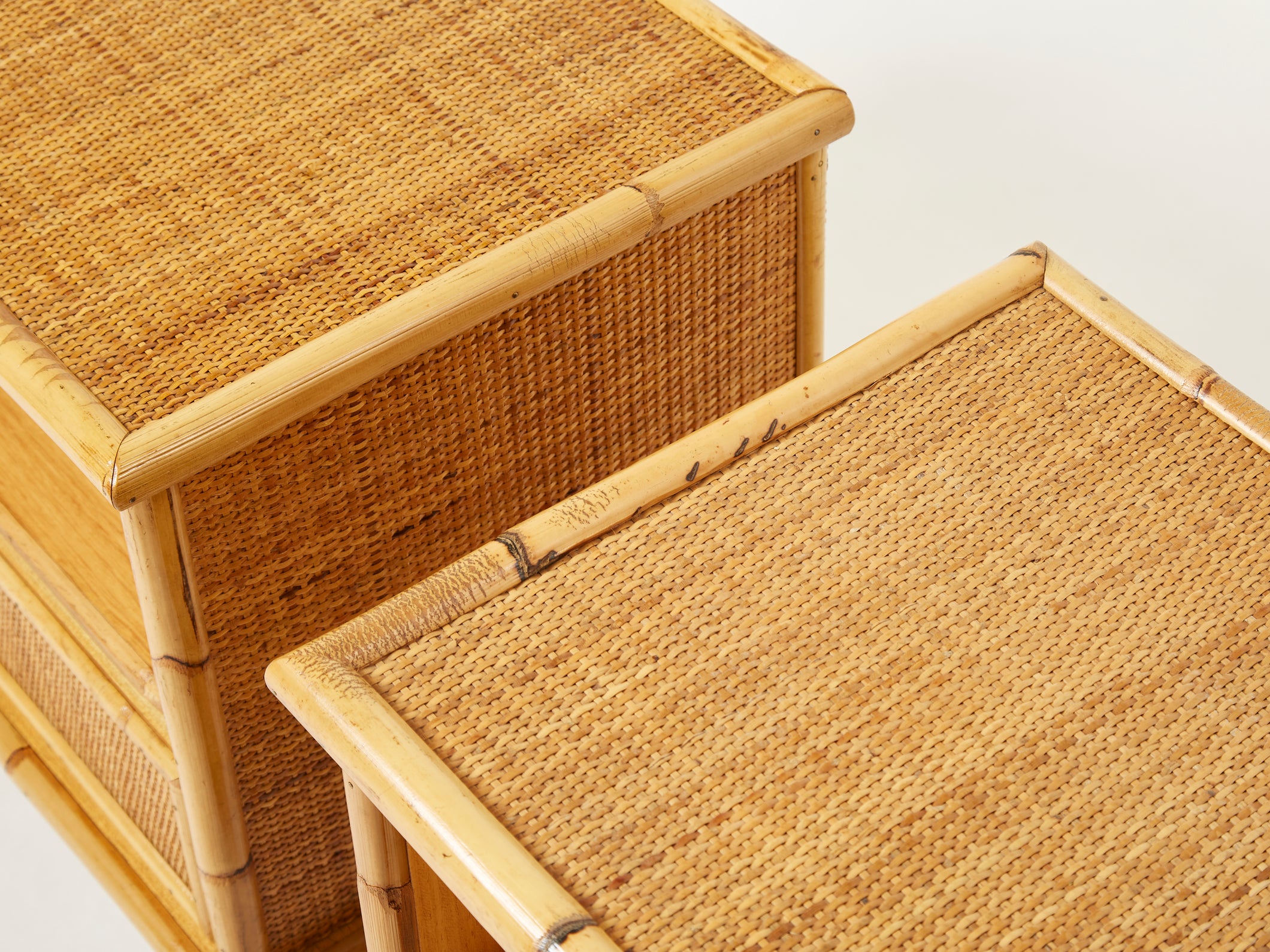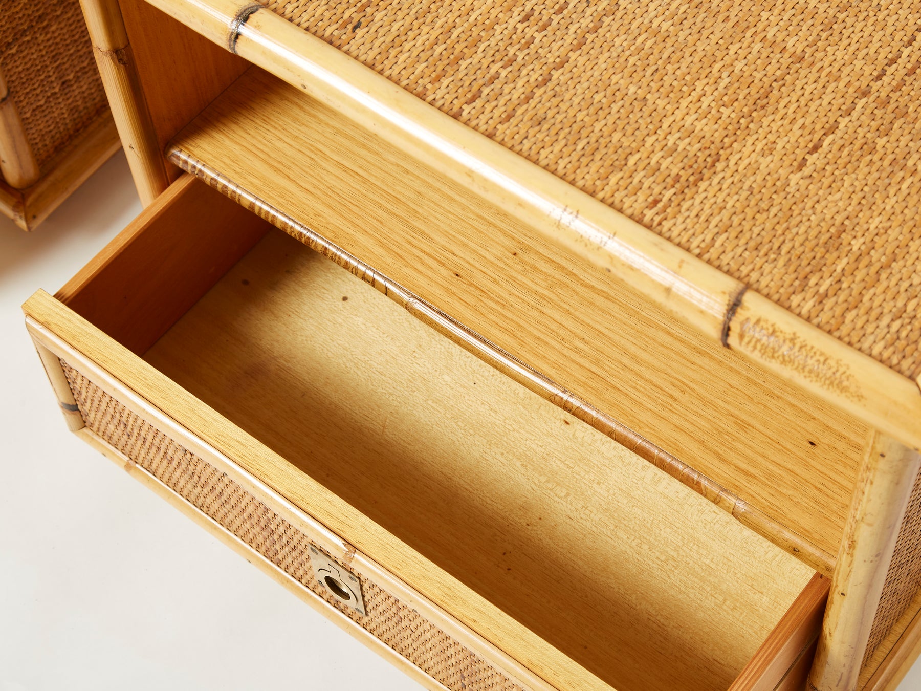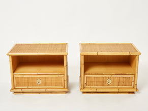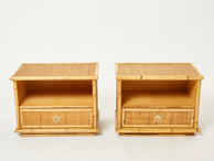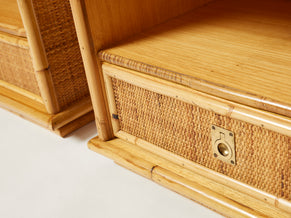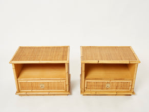 Pair of Italian Dal Vera bamboo rattan and brass night stands 1970s