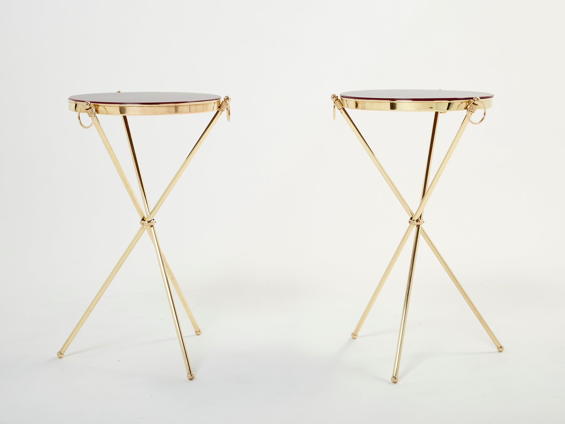 Pair of Maison Jansen brass red lacquer gueridon tables 1960s