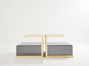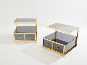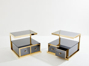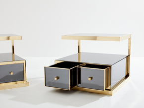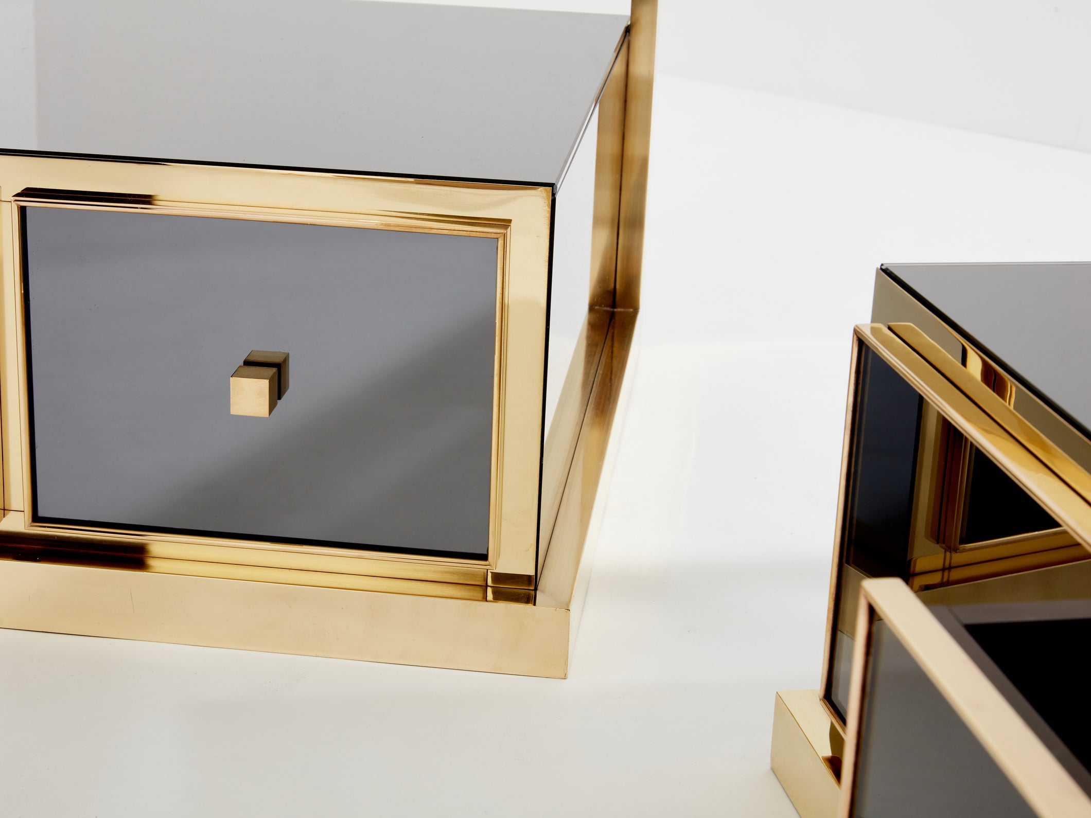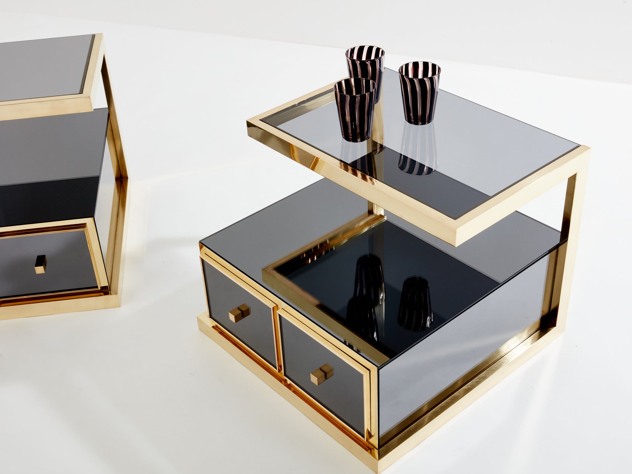 Pair of Michel Pigneres smoked mirrored and brass side tables 1970s