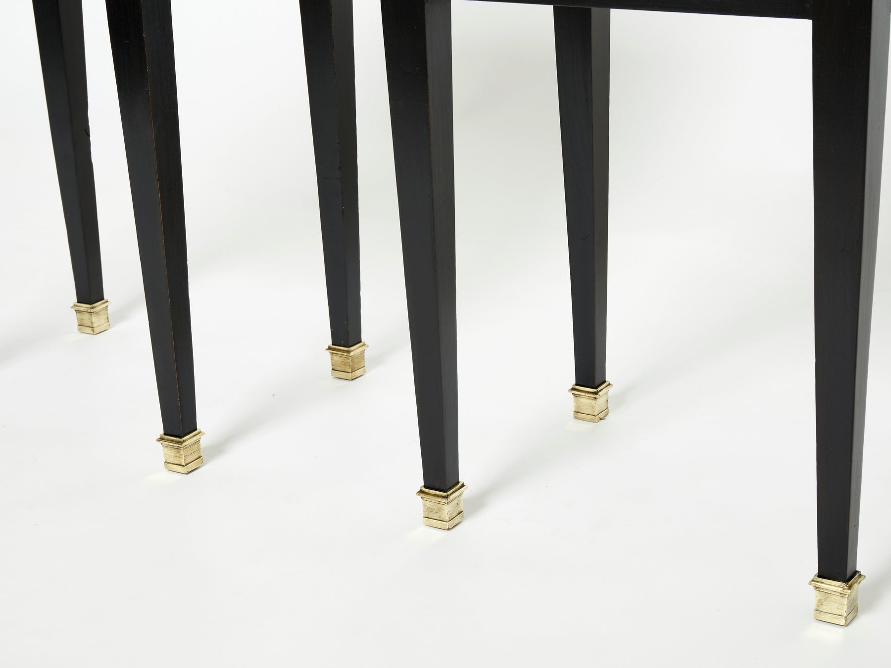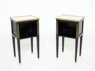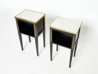 Pair of stamped Maison Jansen black brass marble nightstands 1950s
