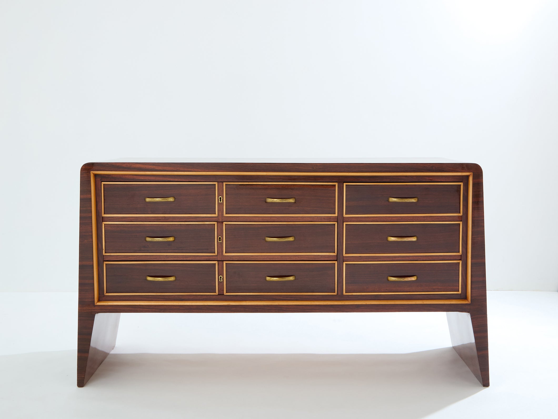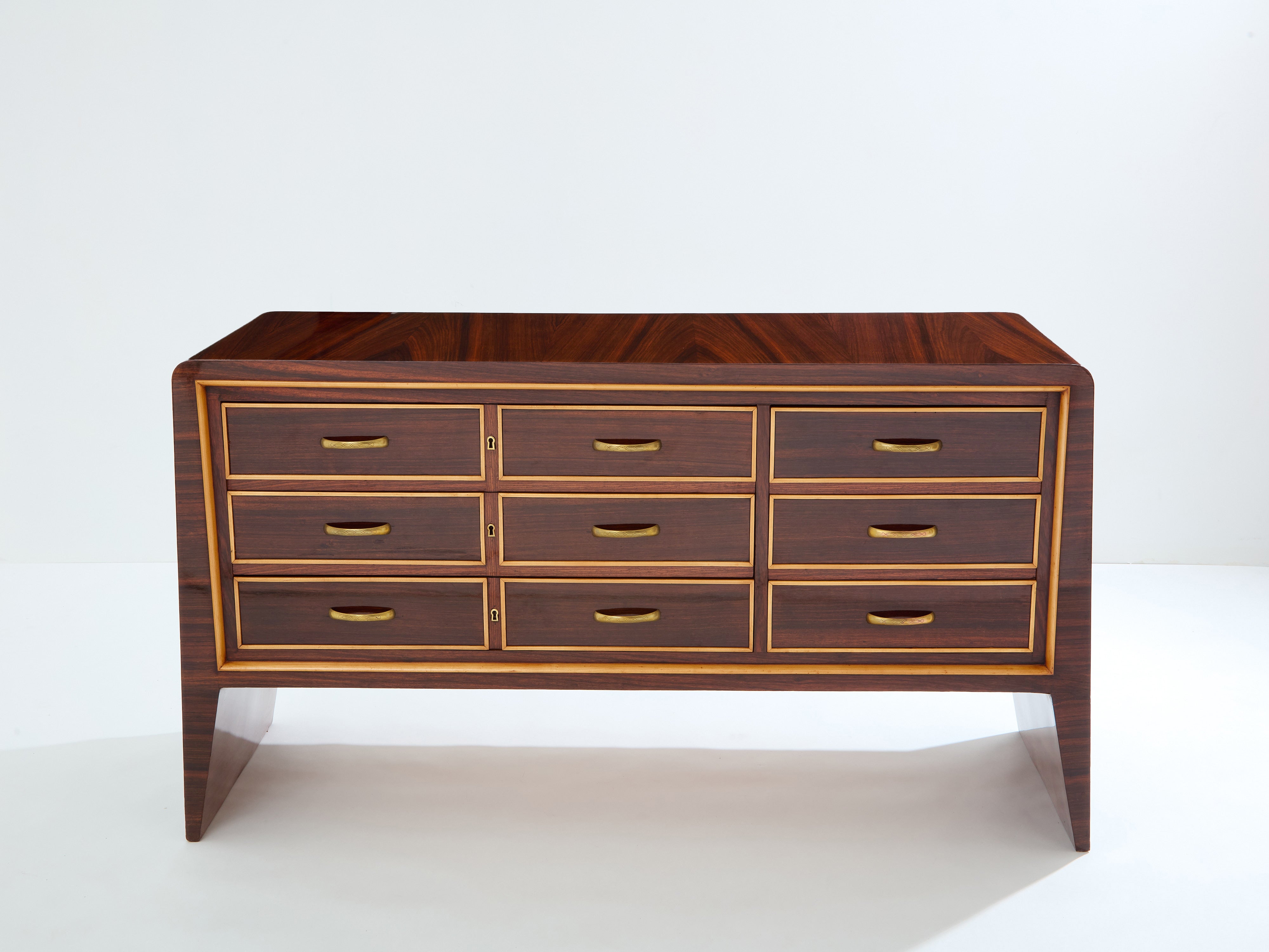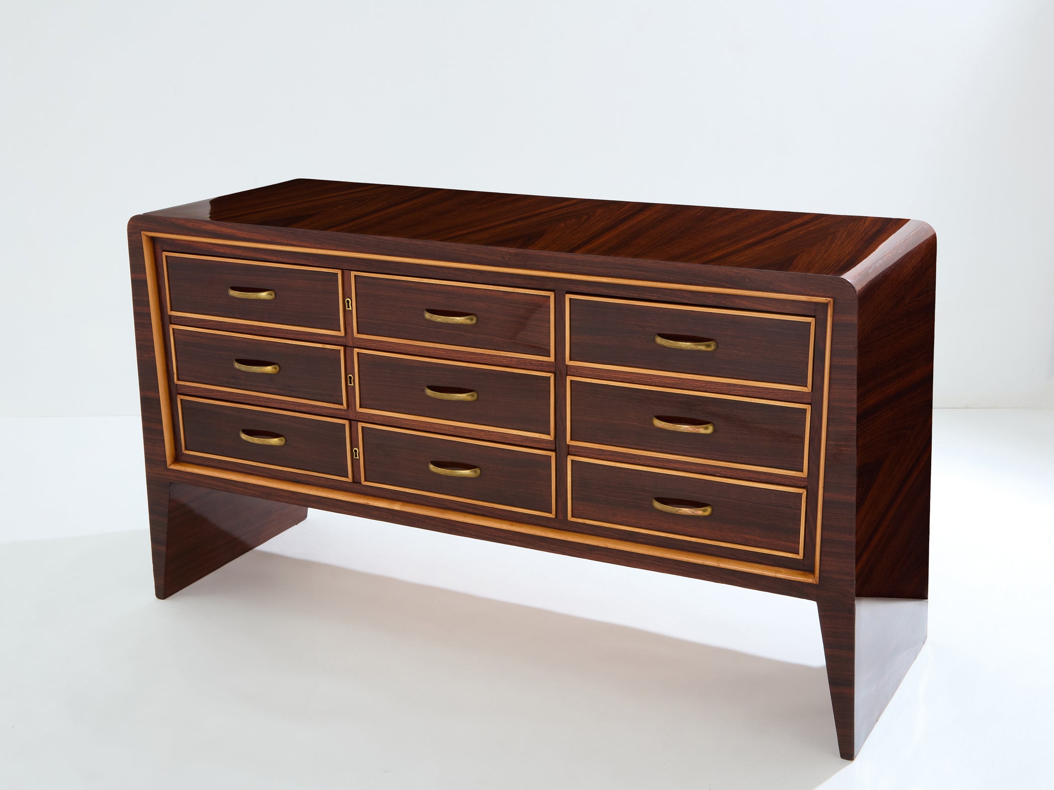 Paolo Buffa rosewood sycamore and brass chest of drawers 1940s