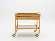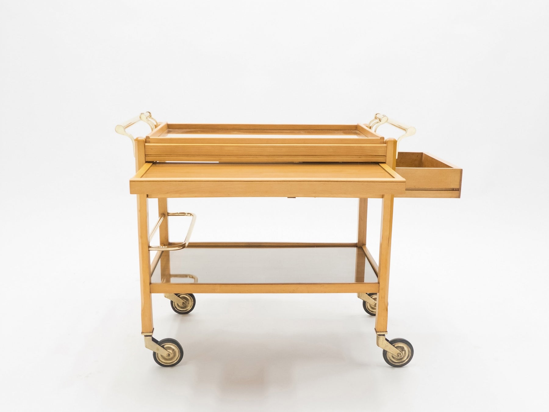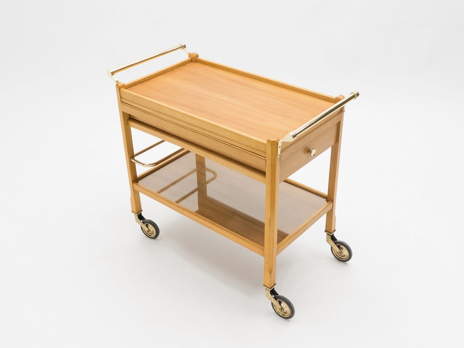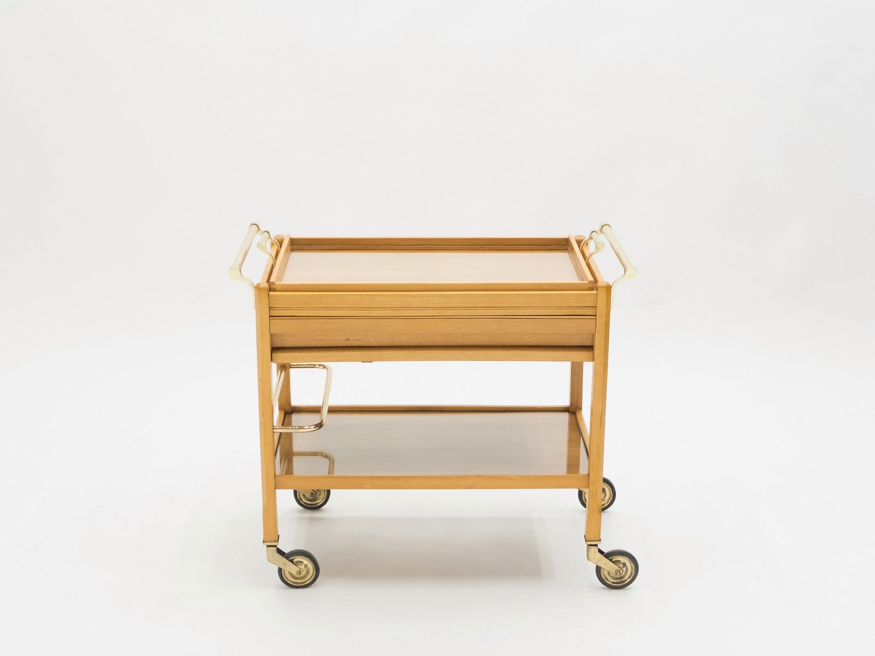 Rare Jacques Adnet art deco beechwood brass bar cart trolley 1940s