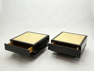 Rare pair of end tables by J.C. Mahey brass black lacquered 1970s