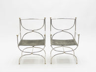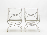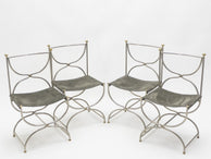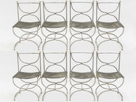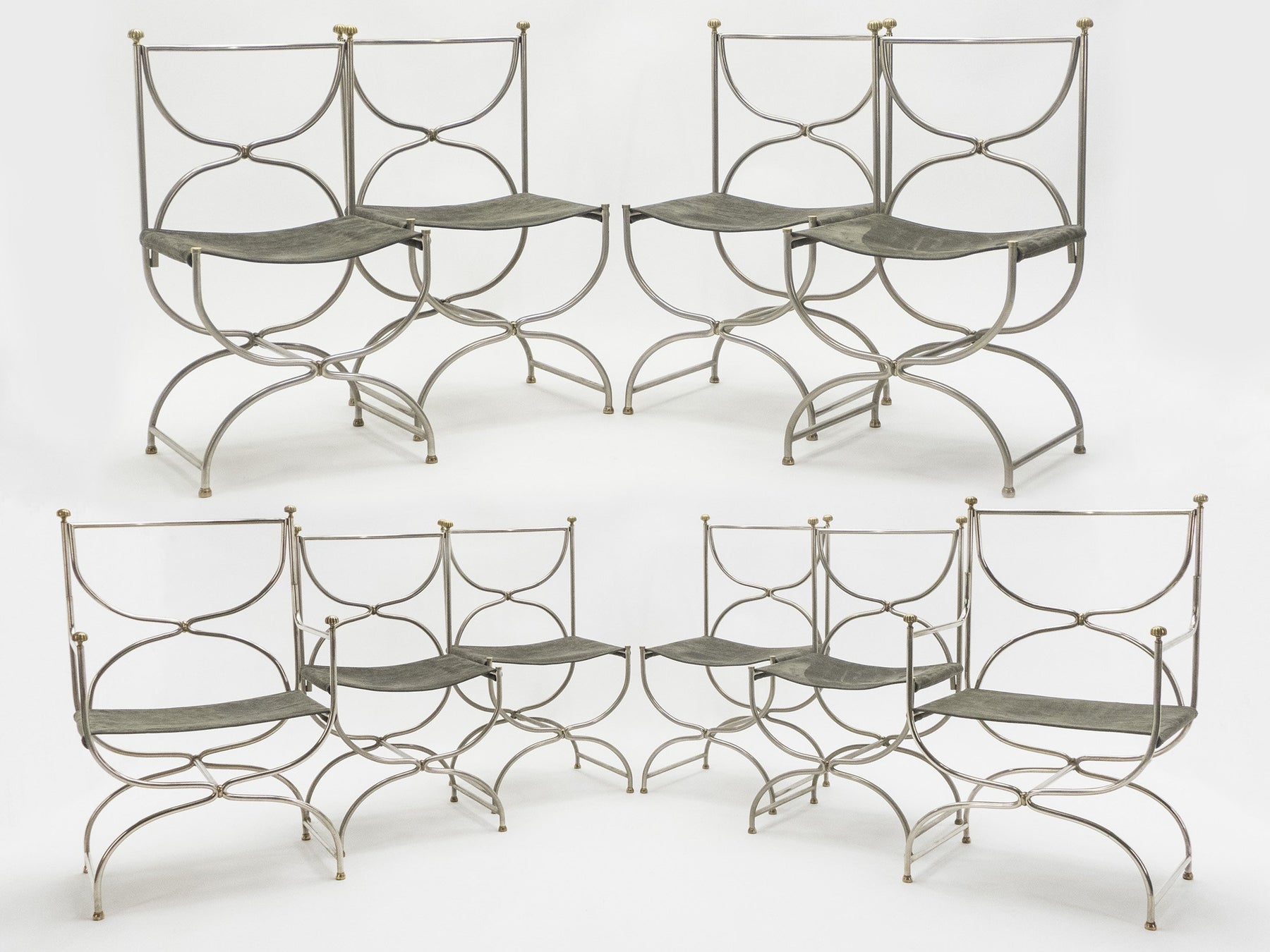 Rare Set of ten Mid Century steel brass leather chairs Maison Jansen 1960s