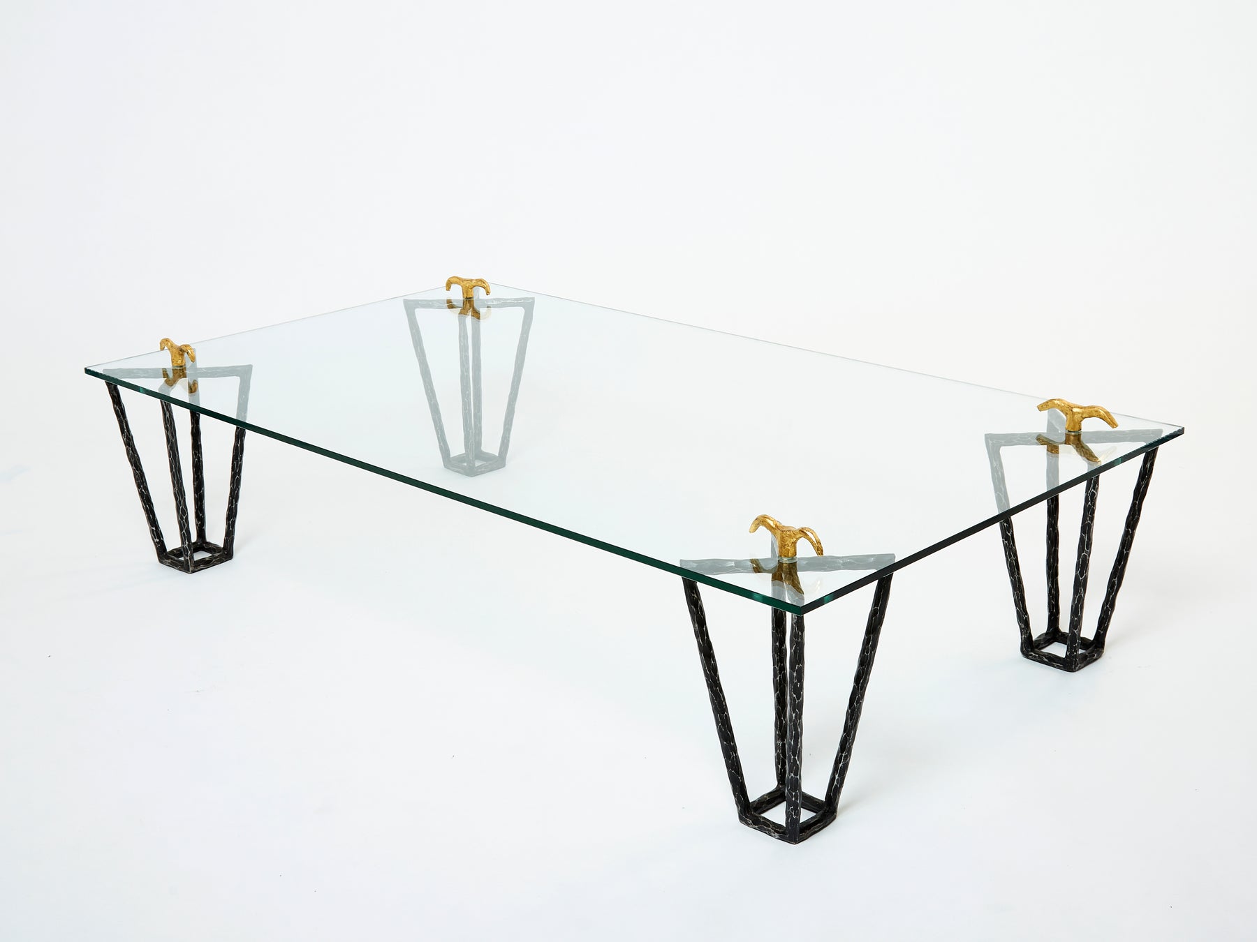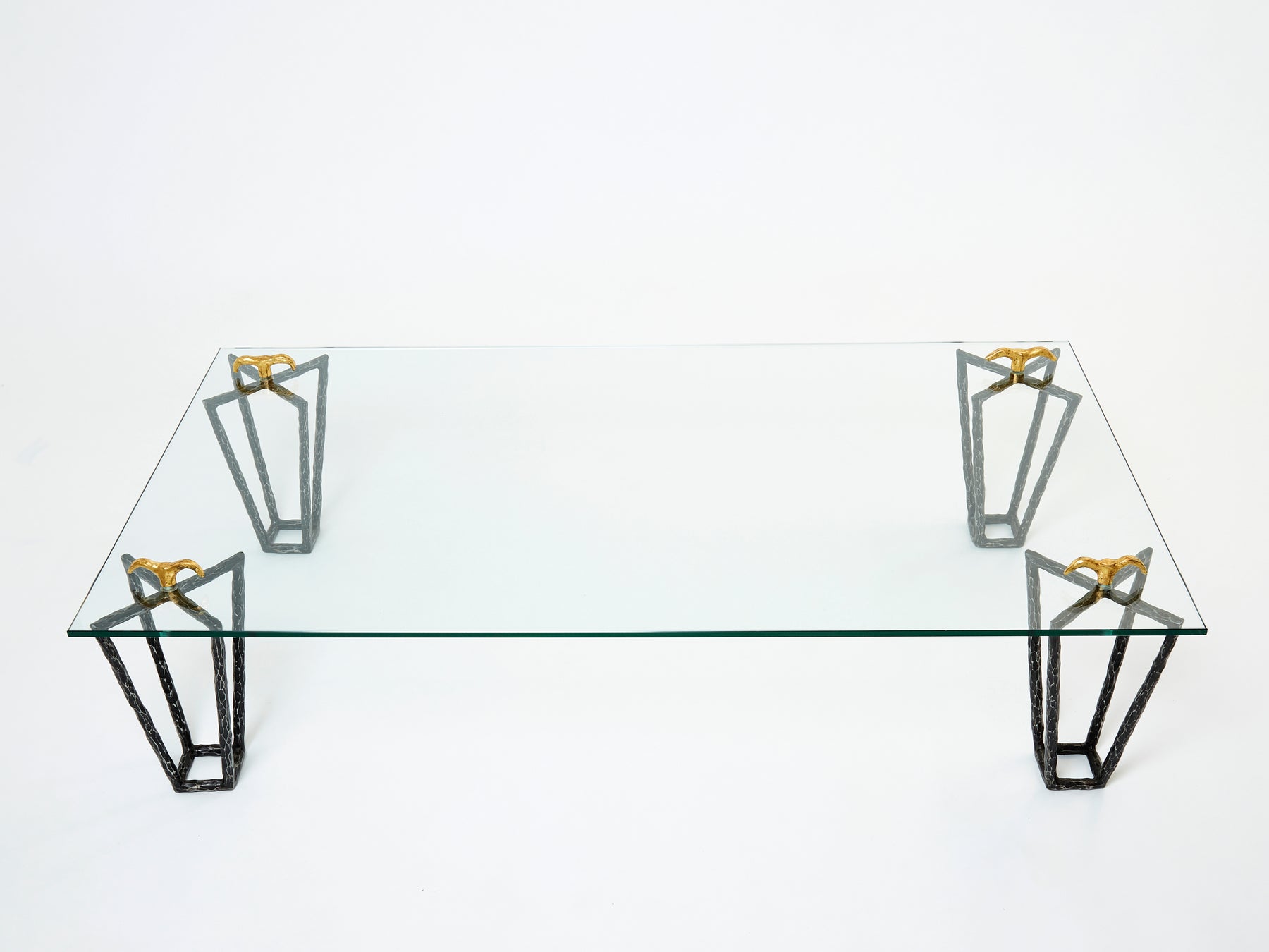 Rare signed gilded wrought iron coffee table by Garouste & Bonetti 1995.