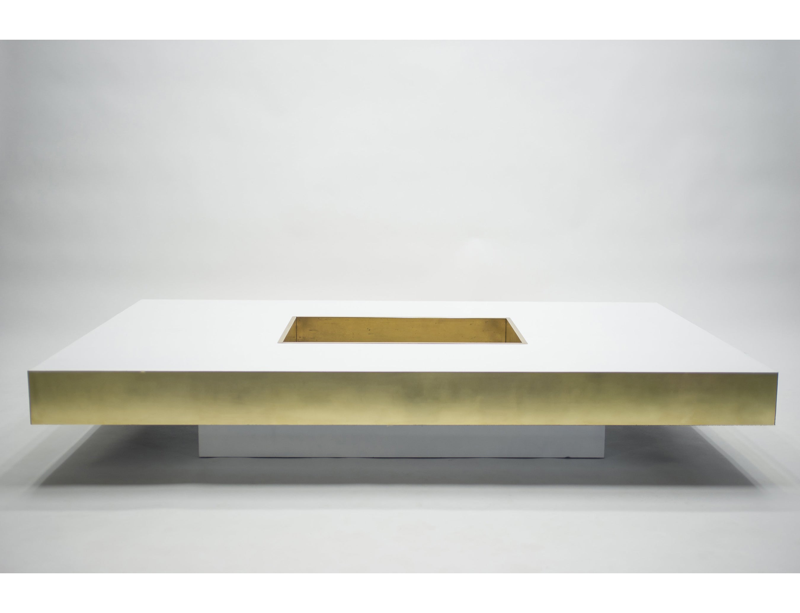 Rare extra large Willy Rizzo white lacquer and brass bar coffee table 1970’s