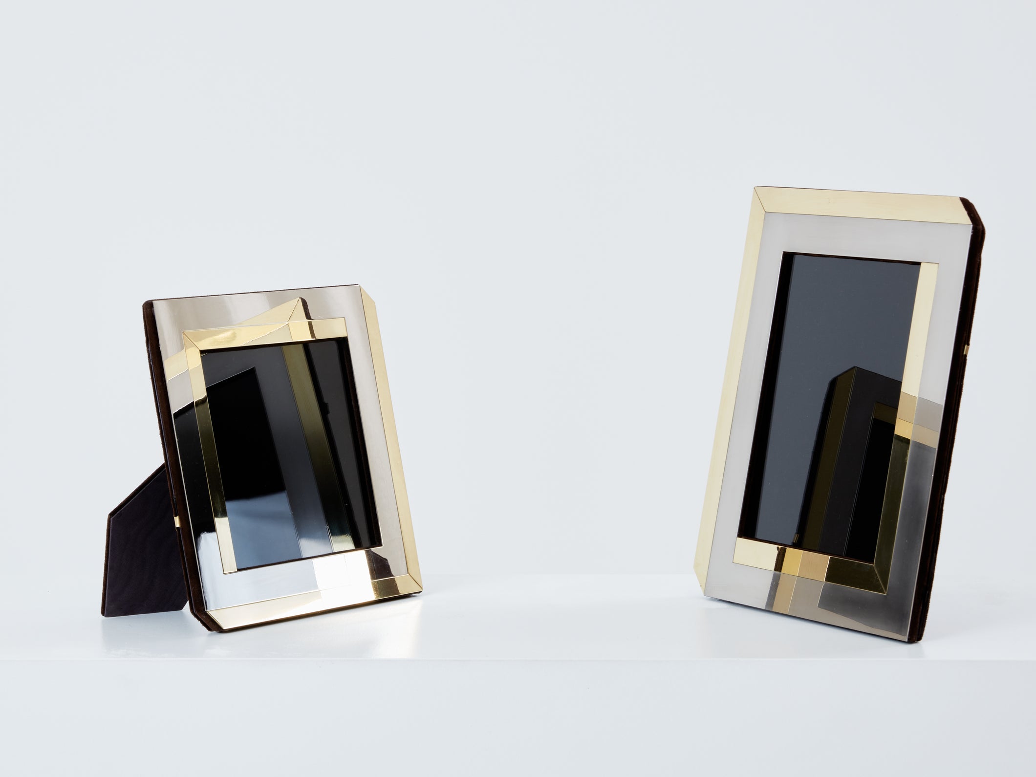 Romeo Rega Italian brass chrome set of two picture frames 1970