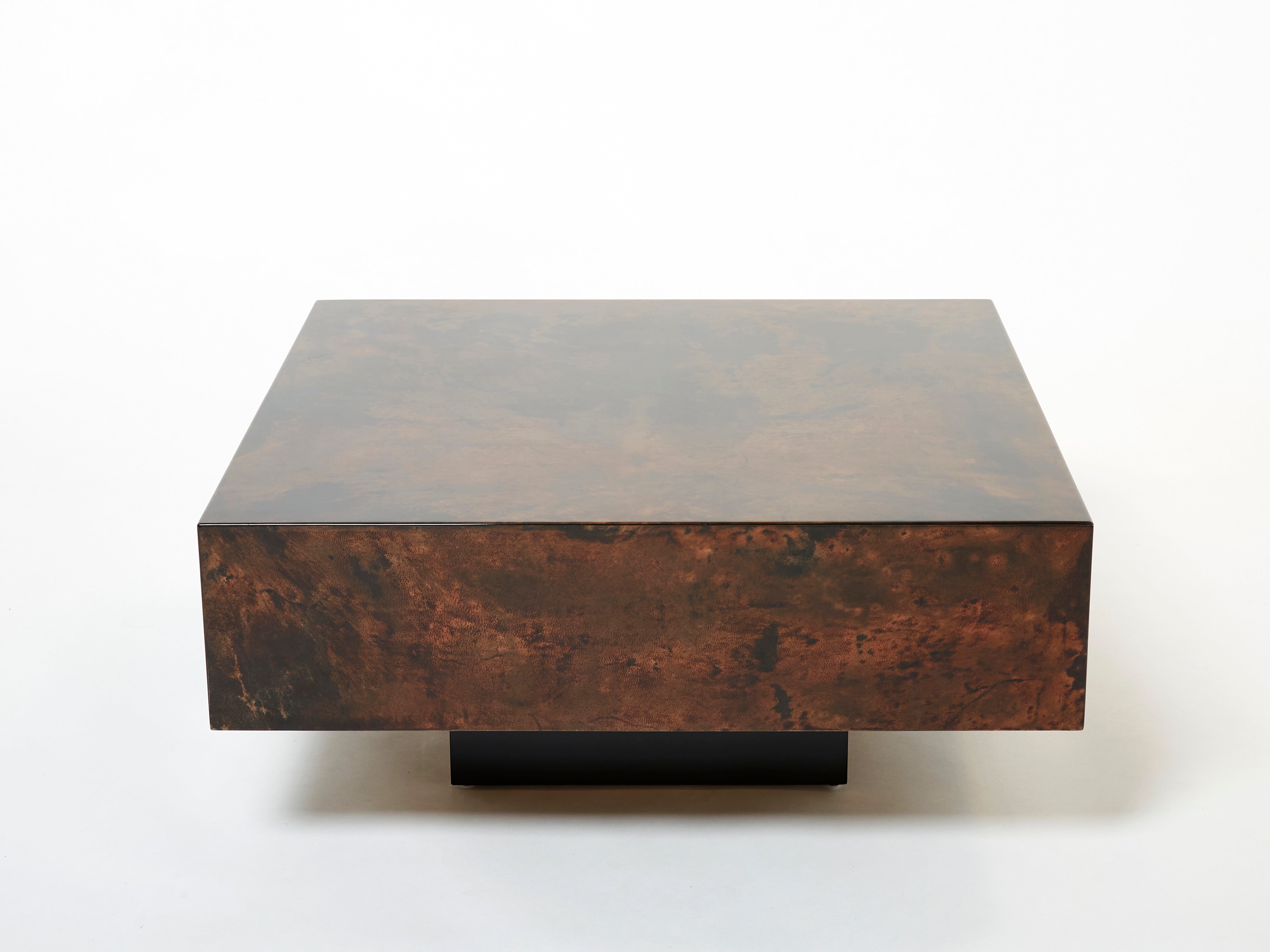 Square goatskin parchment coffee table by Aldo Tura 1960s
