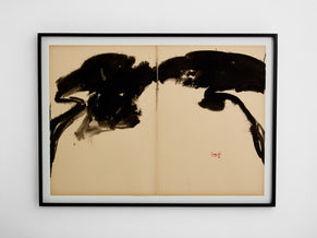 T’ang Haywen signed diptych ink on beige paper 1972